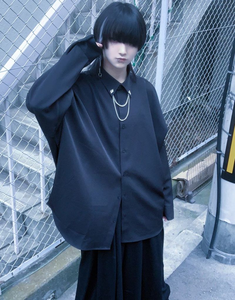 #ユニセックス #オーバーサイズ #ジェンダーレス #長袖シャツ #モード #モノトーン #ブラックコーデ #ハトメ #リング