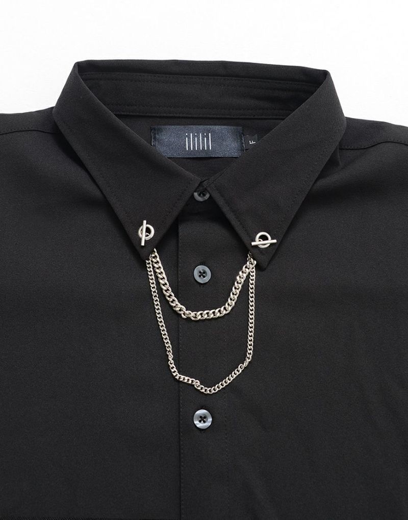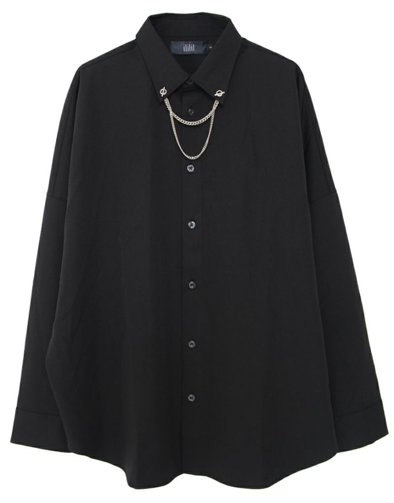 ililil チェーン付きオーバーサイズブラックシャツ/全1色