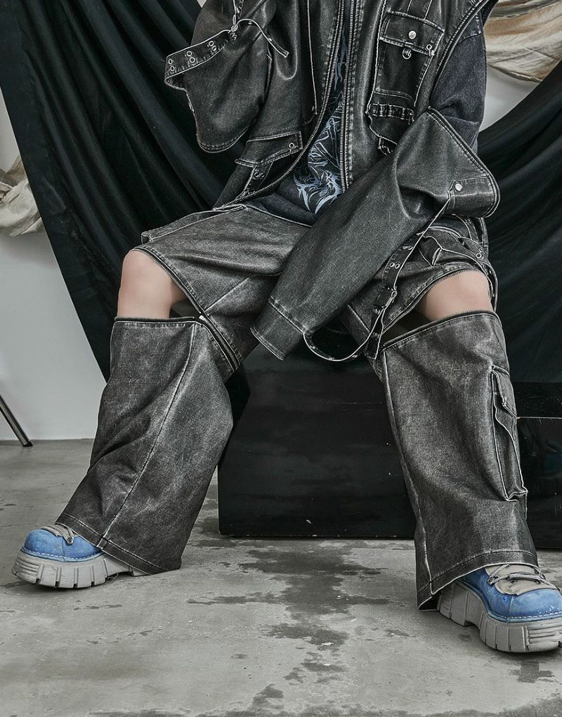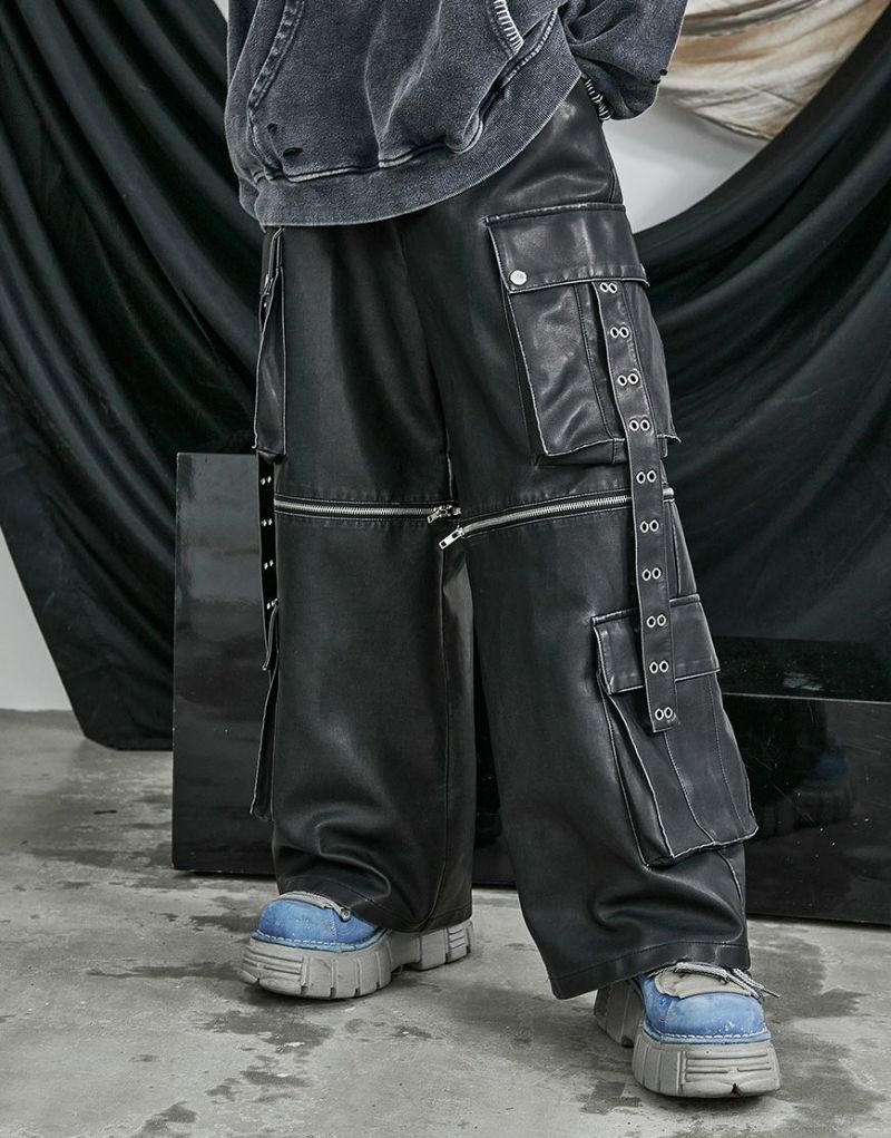 ililil【イルイルイル】より2way gimmick synthetic leather cargo pants