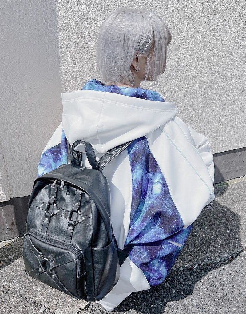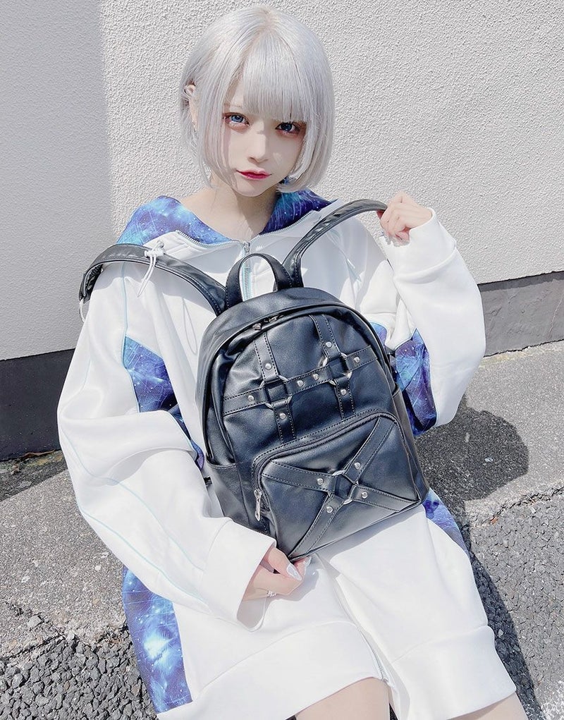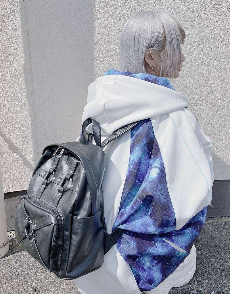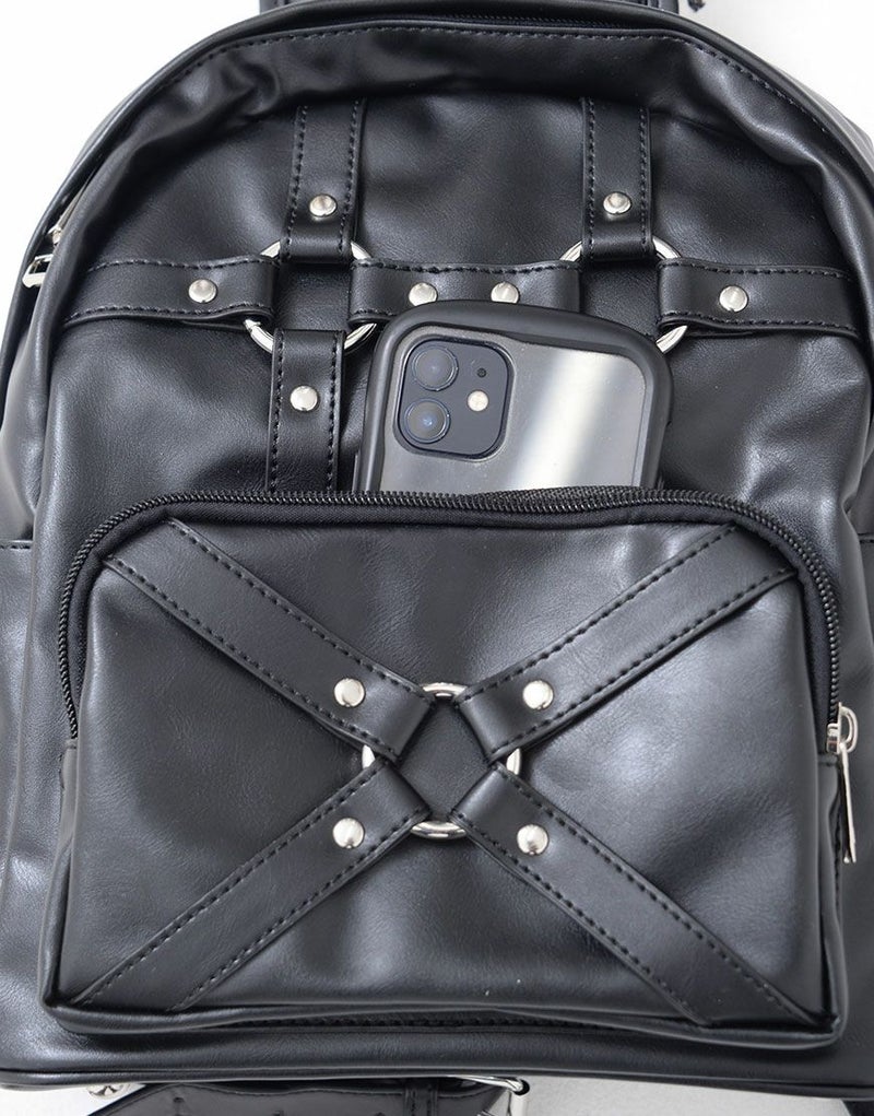 ililil【イルイルイル】より地雷ちゃんは~ねすリュックが登場です。 フロントボディにハーネスを配置したインパクトあるデザイン。 メインポケット以外にも、 外側にサブポケット、携帯入れがあり 見た目だけでなく、 機能性も充実しています サイズ感も大きすぎず小さすぎずでメンズ、レディース問わず使えるサイズ感です。