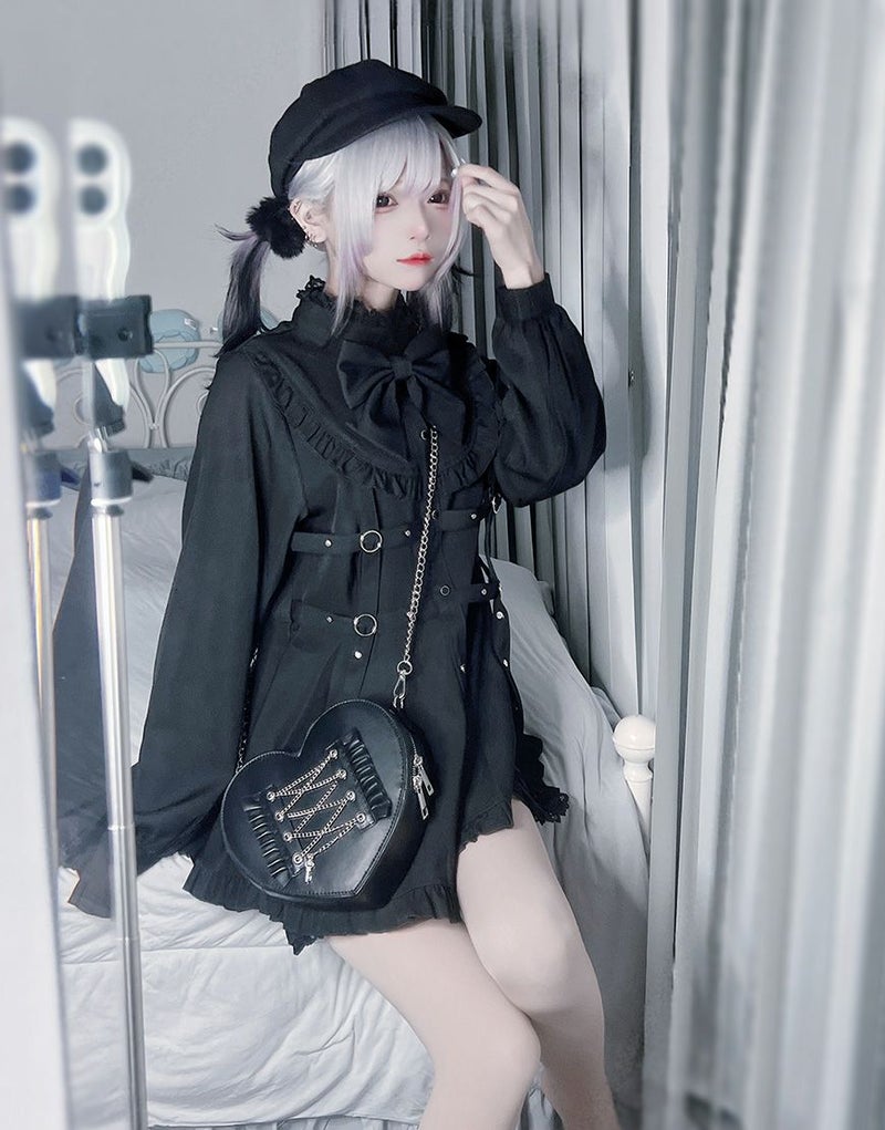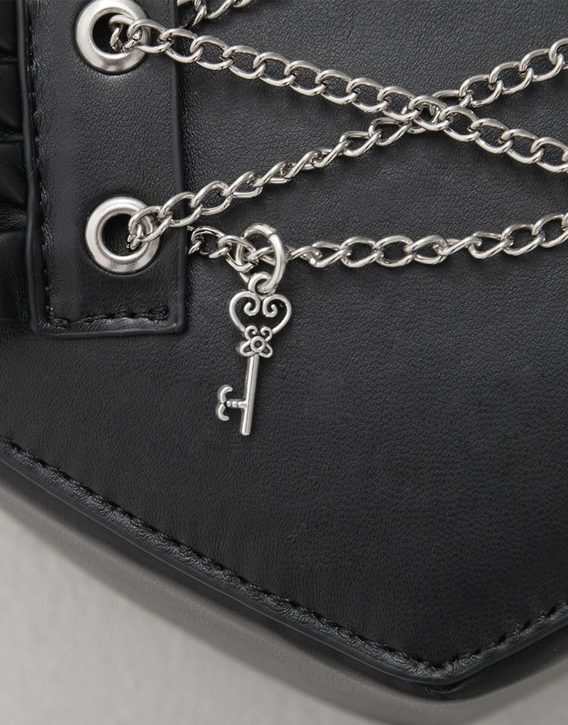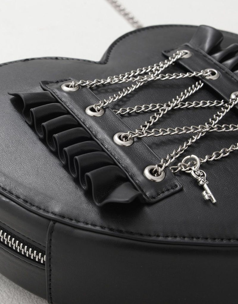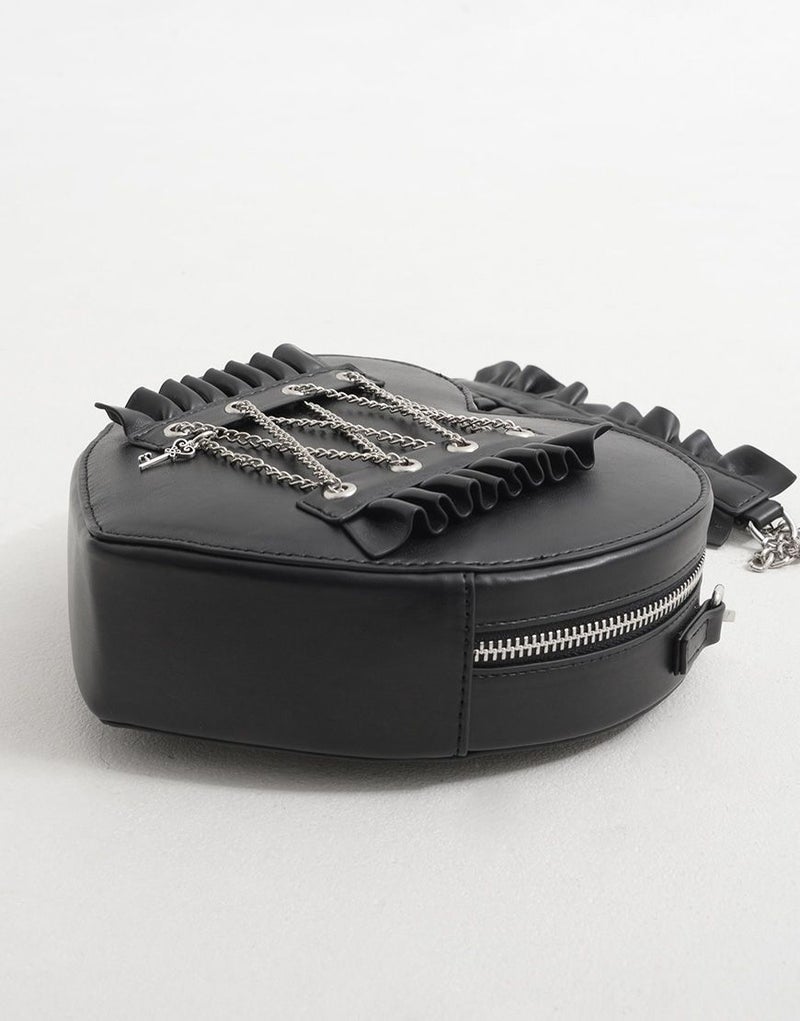ショルダーストラップはチェーンデザインで、ショルダー部分にはフリルが施されています✨