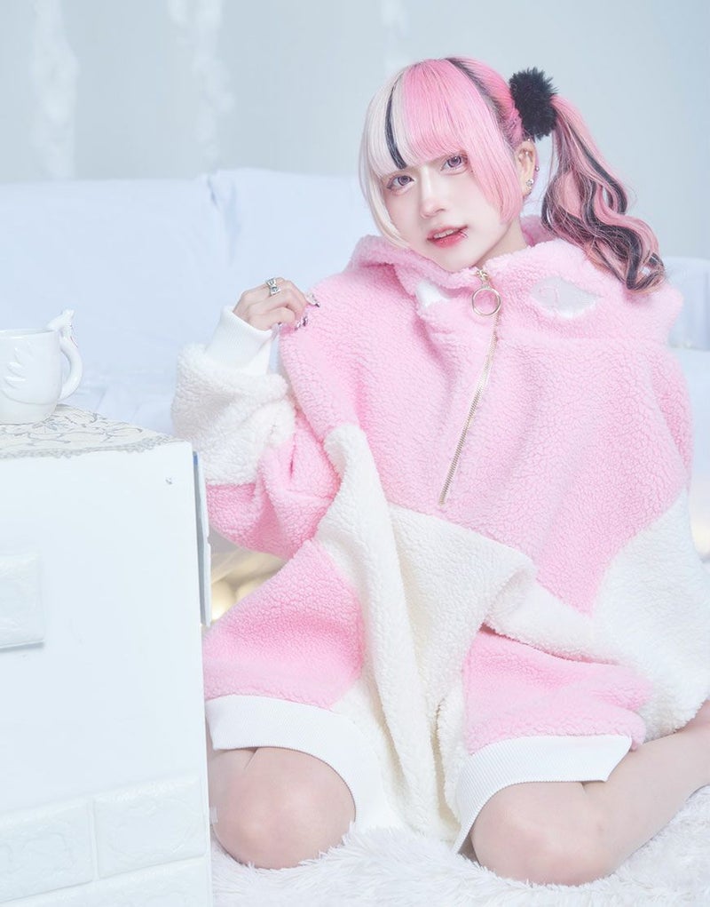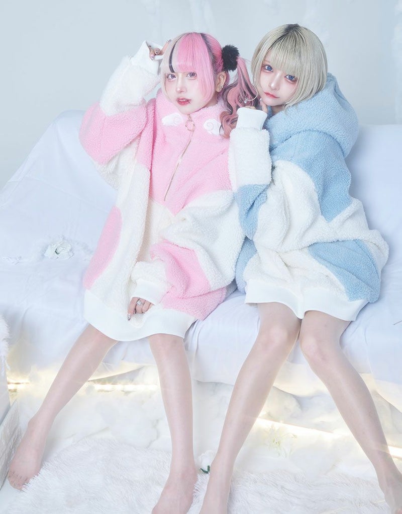 #天使界隈 #ユニセックス #ジェンダーレス #水色系統 #アウター #パーカー #ボア #もこもこ #ハイネック