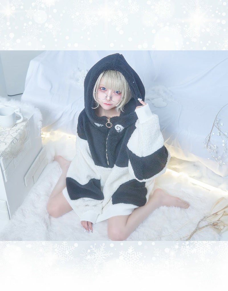 長めの丈感と大きめフードでしっかり防寒しながらもかわいい印象に!