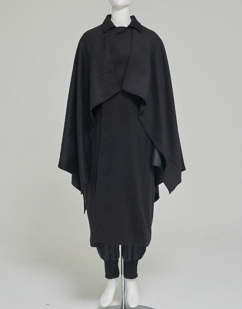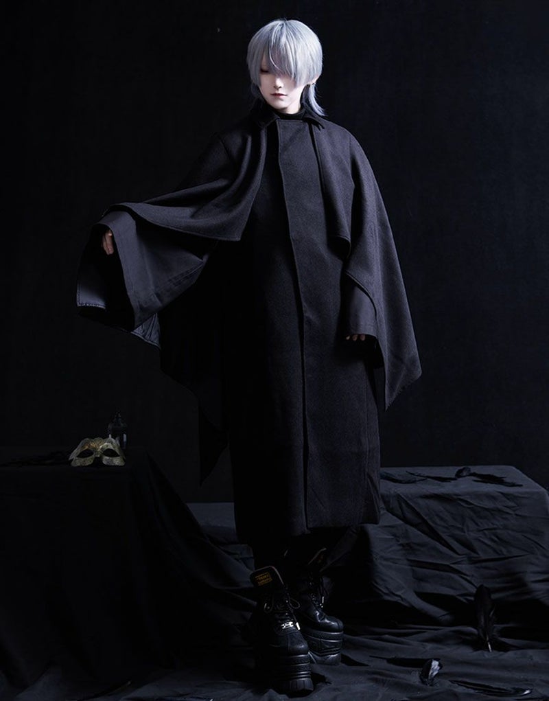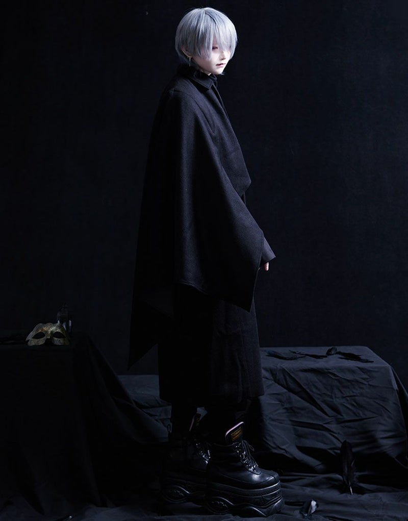 ililil【イルイルイル】より【和装文雅】ケープコートが登場です。 デザイン性のあるケープがインパクト抜群のトンビコートです。 袖が無いトンビコートは普段着はもちろん、 和服の大きな袖が邪魔にならずに着用していただる着物コートです。 ウール混生地なのでとても暖かく重厚感があります。 内ポケット付きで機能性も良いです。 キレイめかつモードな雰囲気で、男女共に取り入れやすいアイテムです。 #ユニセックス #ジェンダーレス #ブラックコーデ #モード #コート #ケープ #アウター #和装
