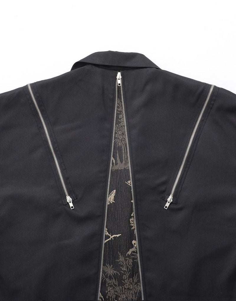 背中のファスナーを開けると、和柄のジャガード生地が現れ、独特のデザインアクセントとなっています。