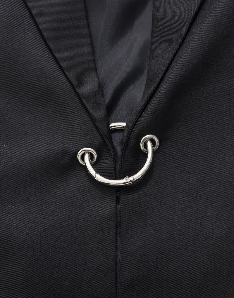 また、襟とフロント部分にはリングが施されており、ディテールにもこだわりを感じさせる一着です。