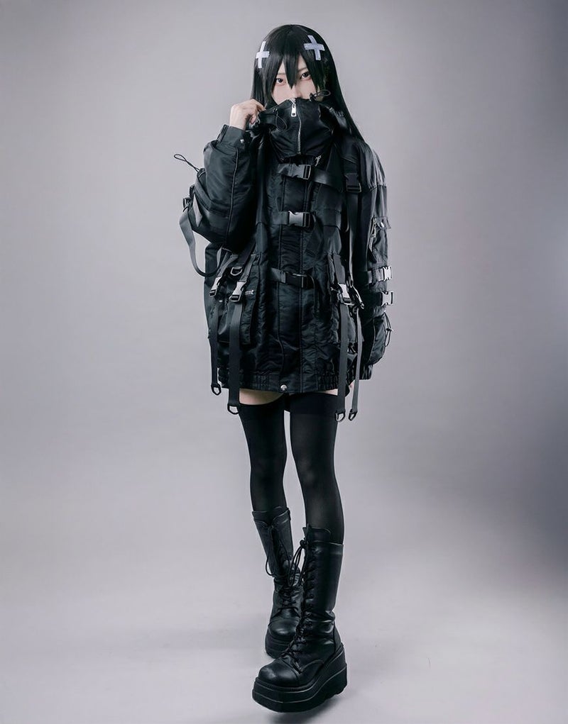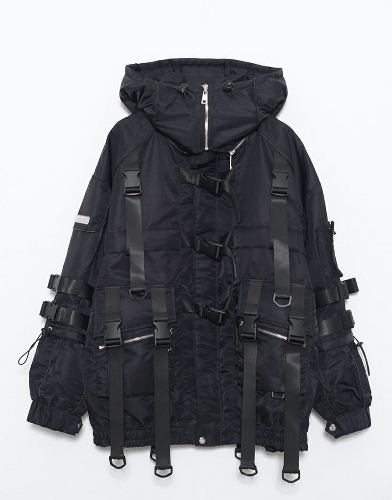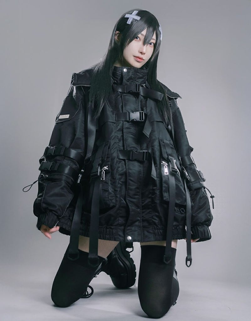 全体にフェイクベルトが施され、テック感を演出しています。