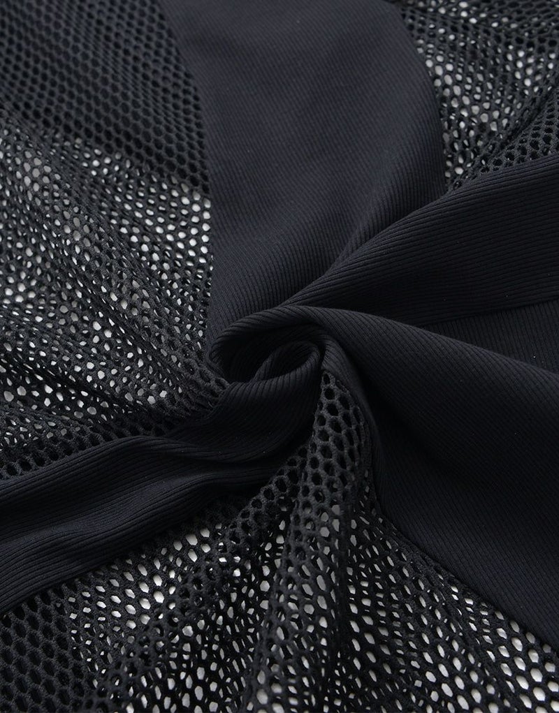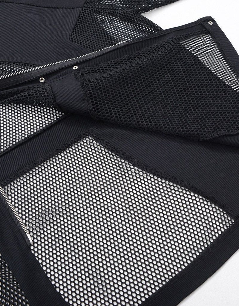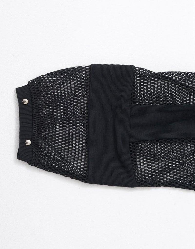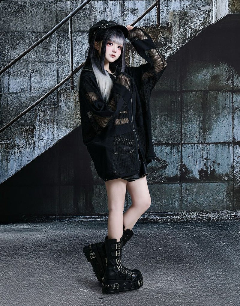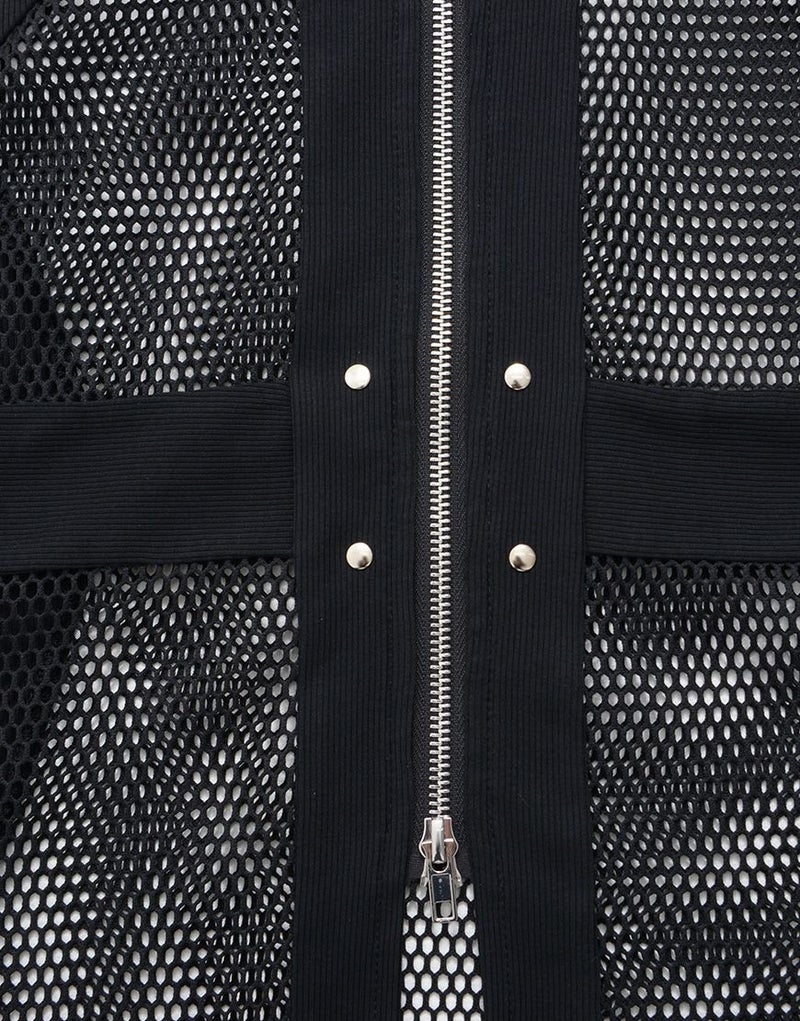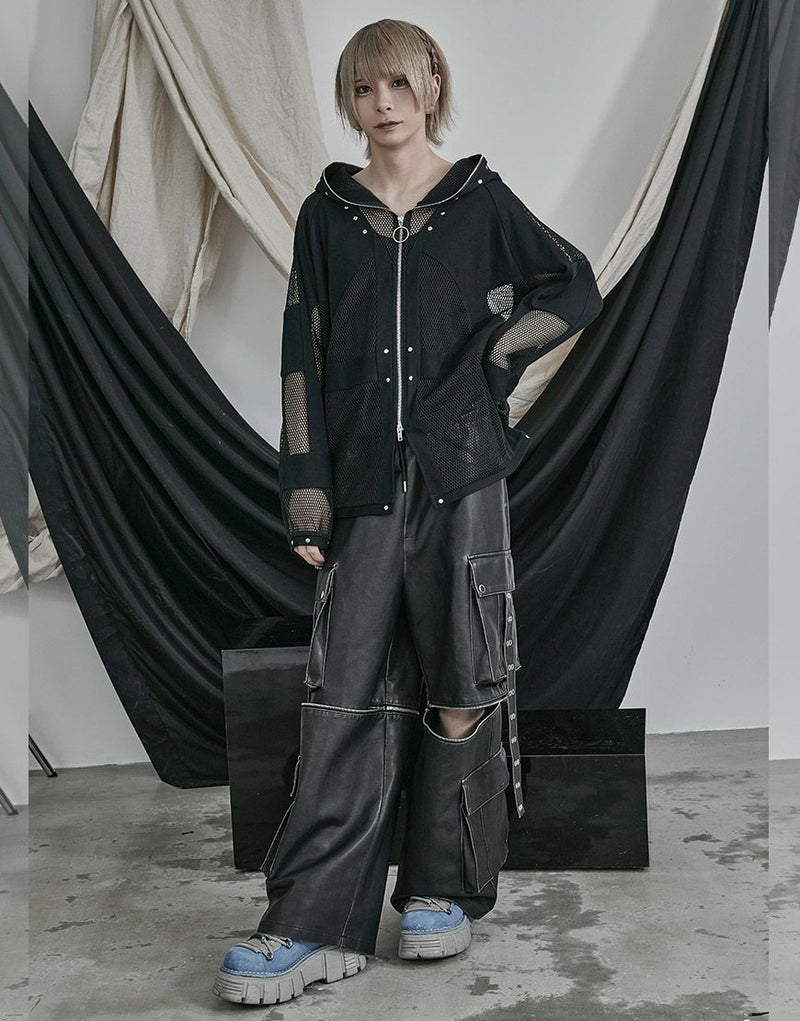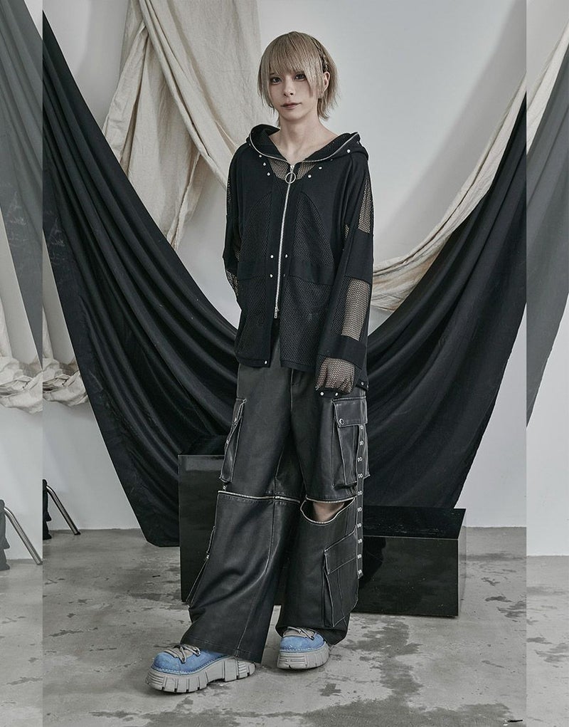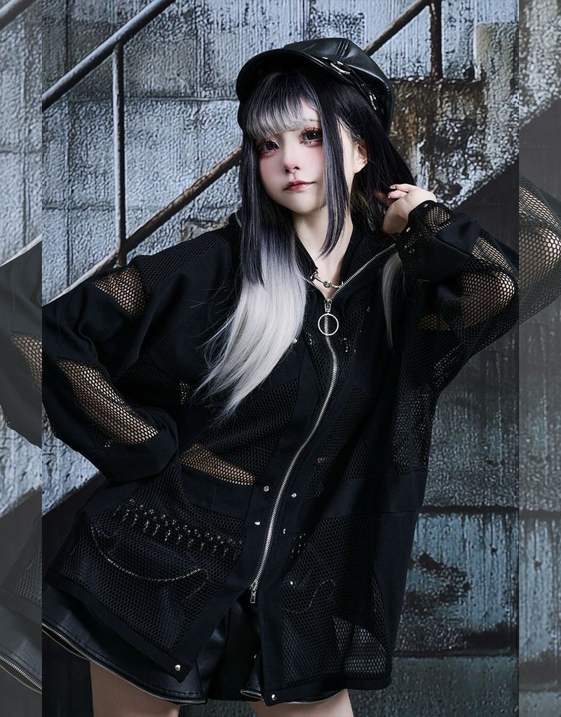 全体的に透け感のあるメッシュ生地とリブ生地の切り替えデザインをいれたパーカー。