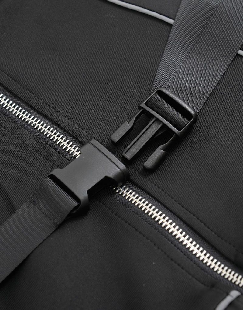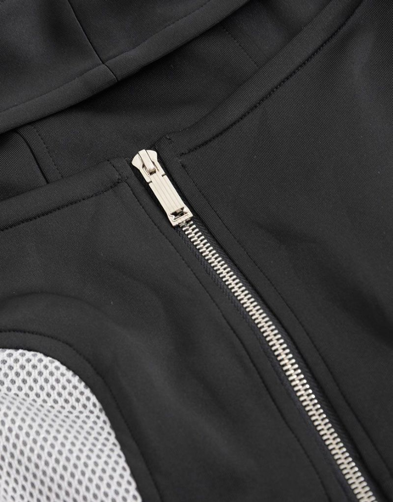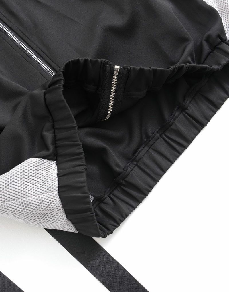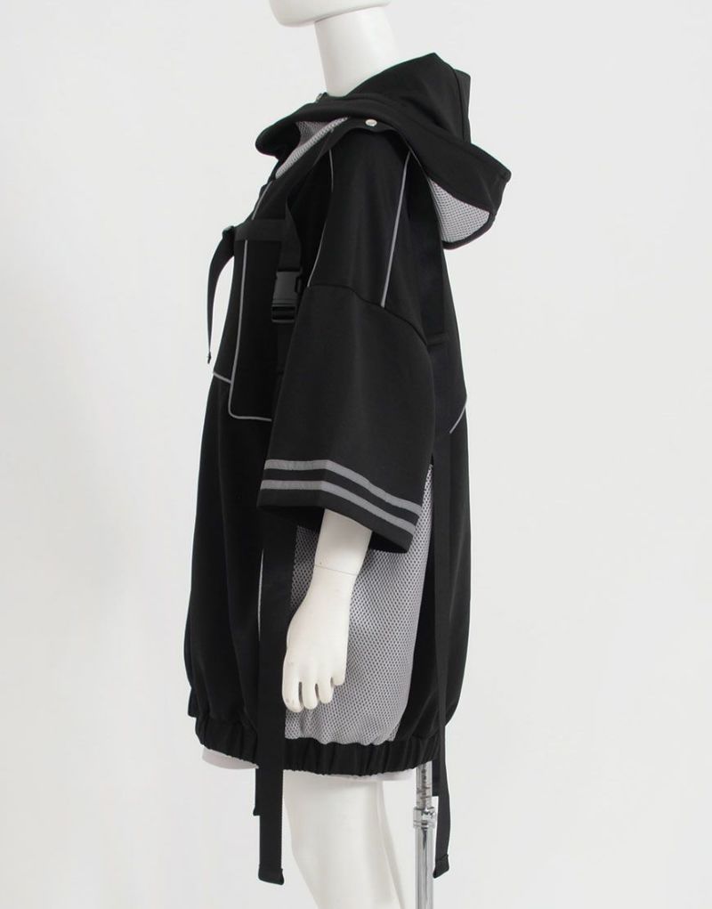 ililil【イルイルイル】よりログイン完了!!ぱ~か~が登場です。 リフレクターパイピングを施したジャージ素材パーカーです。 サイドや、フードから肩にかけてをクッションメッシュで切り替えサイバー感を演出。 フロントからバッグに垂れるようにフェイクベルトがついた豪華な仕様。 バッグにはオリジナルロゴを刺繍で施し、その下にはDカンを配置。 ハイネックになっているので開けたり閉めたりで印象変化も楽しめます。 ゆるっとしたサイズ感でレディース、メンズ問わず着用可能です。