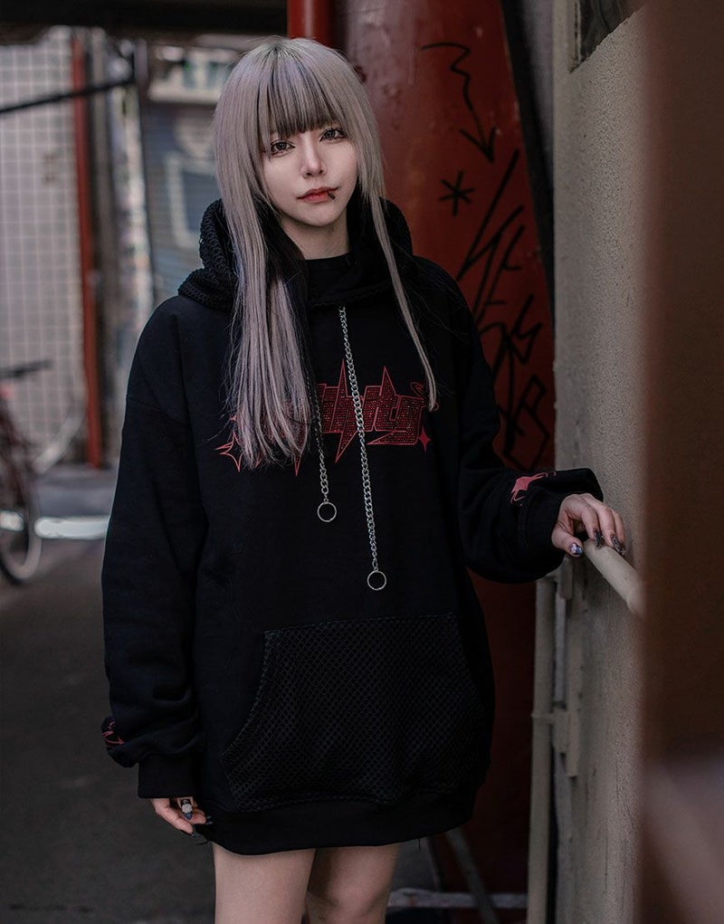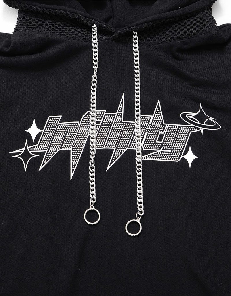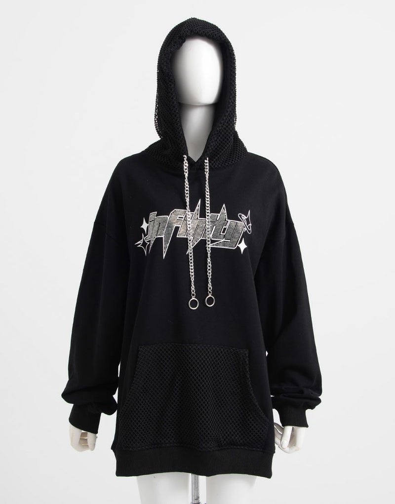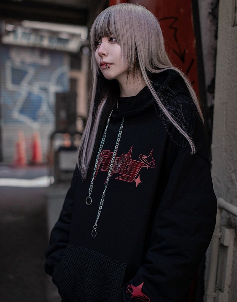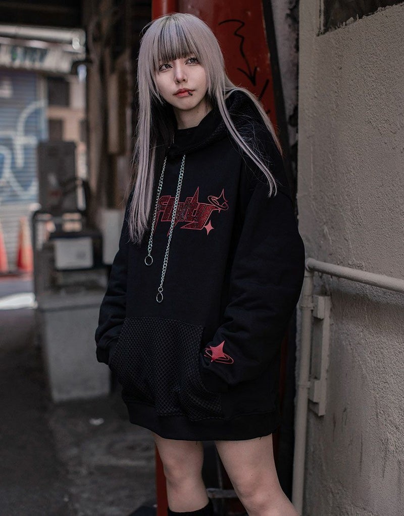 ililil【イルイルイル】より無限発光しちゃうぞぅ!パーカーが登場です。 フロントにはラインストーン使いのオリジナルロゴ、 バックにはINFINITYのウェーブロゴを配置したパーカー。 フードの紐をチェーンにし印象的なデザインに。 ビッグシルエットでメンズ、レディースを問わず、ユニセックスで ご着用頂ける一押しパーカーです。 #ユニセックス #ジェンダーレス #パーカー #ラインストーン #プリント
