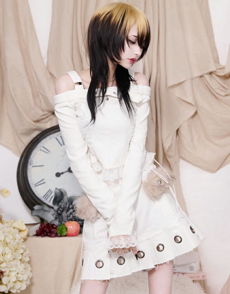 また、裾や袖、フロントにはレースを配置しています。