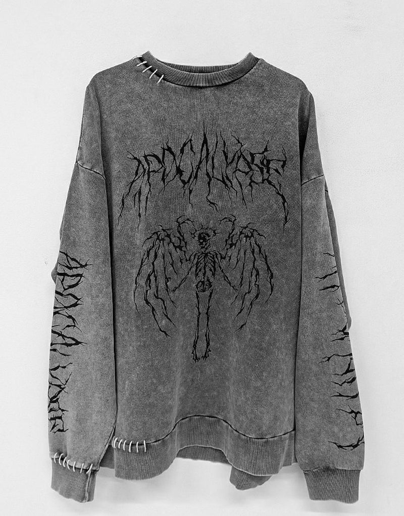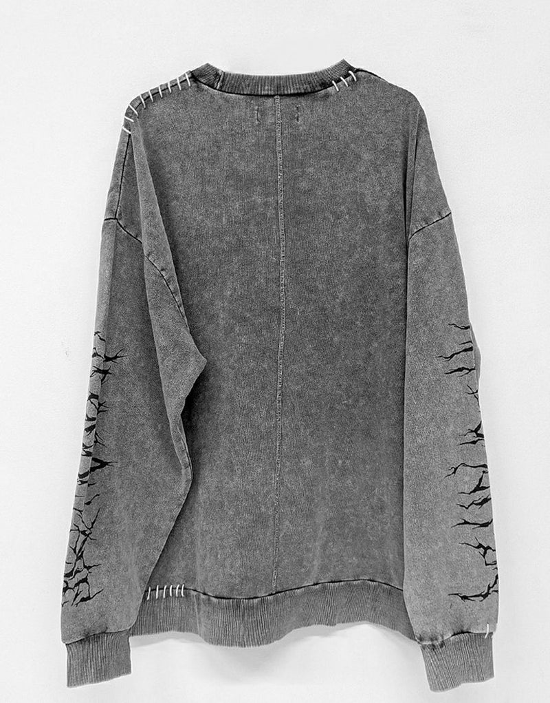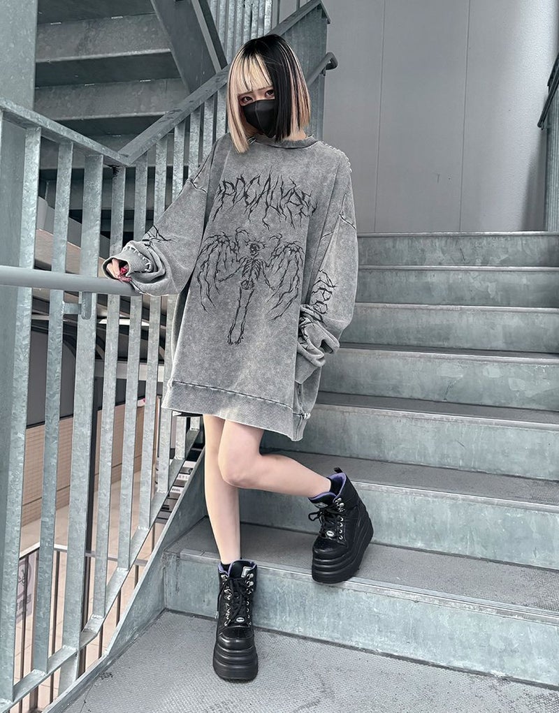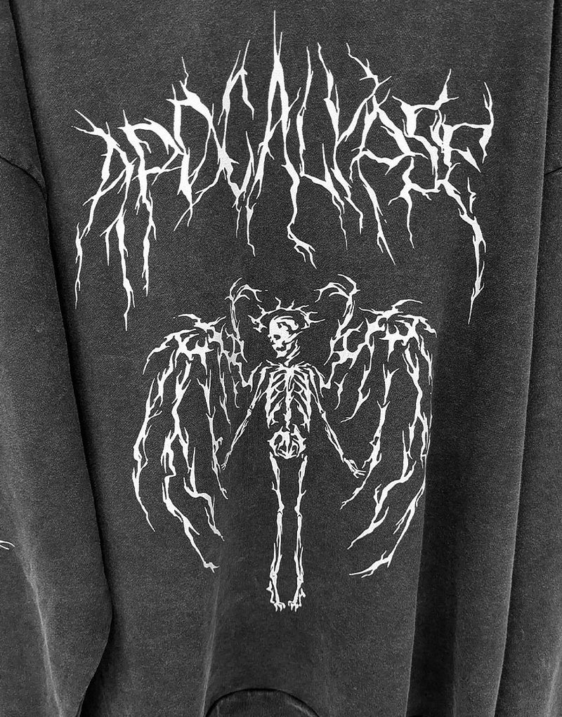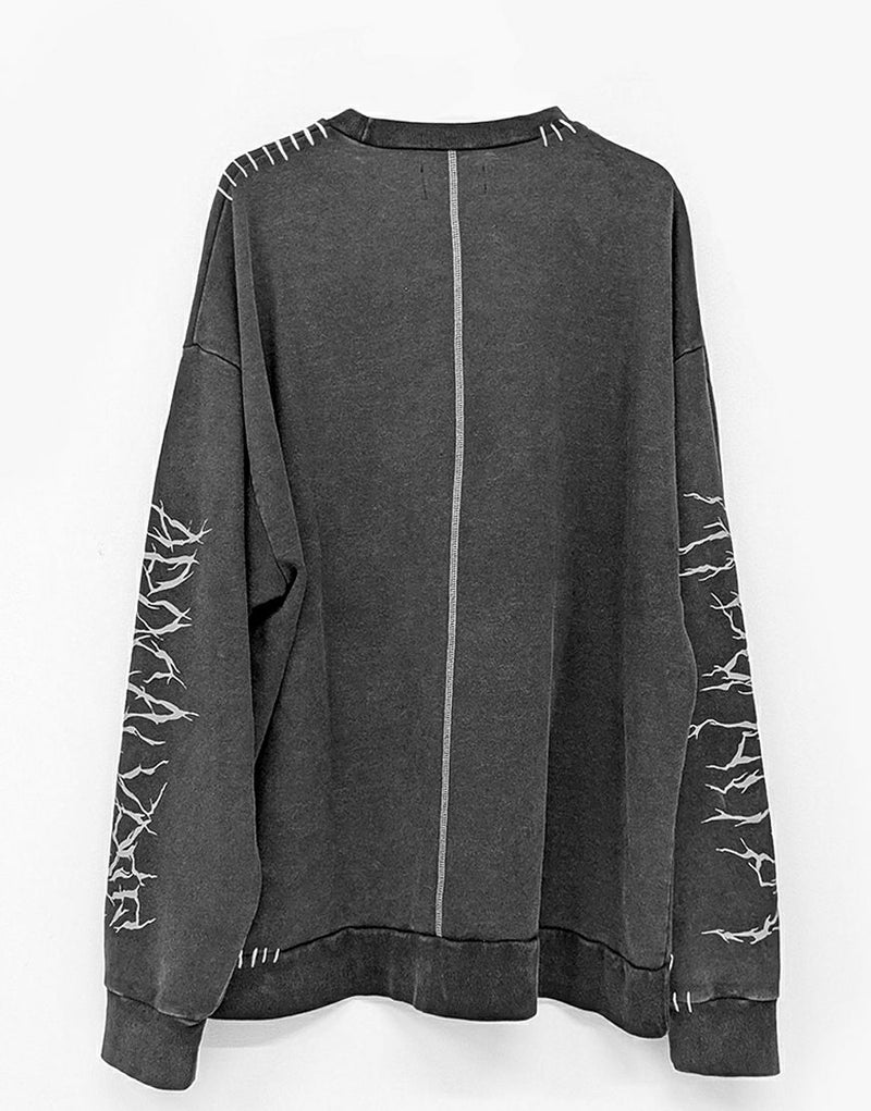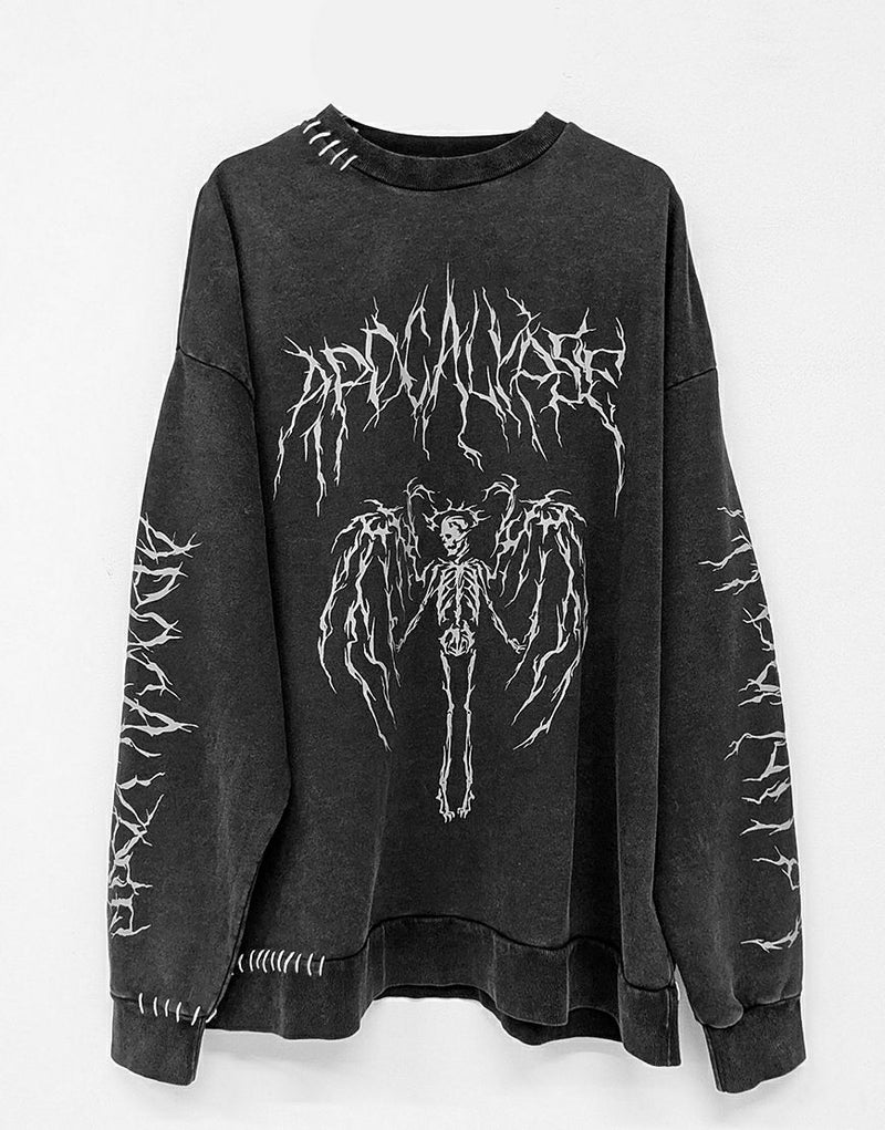 フロントにスカルモチーフのグラフィックがプリントされたスウェット。
