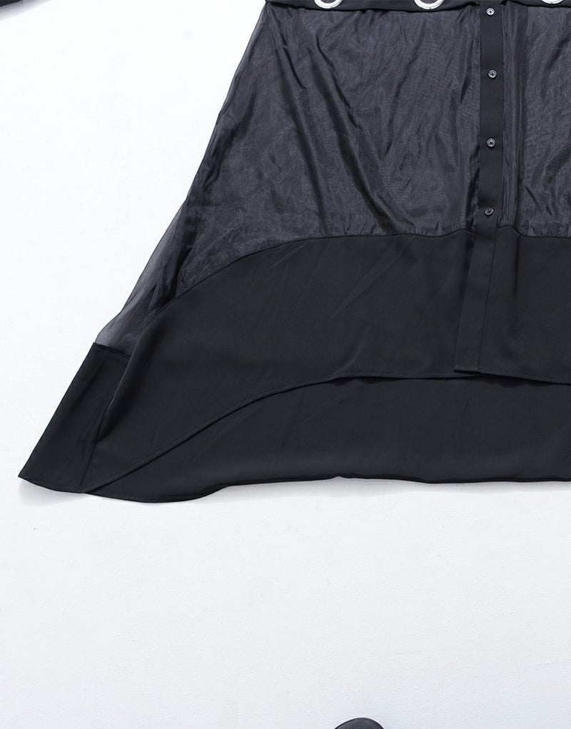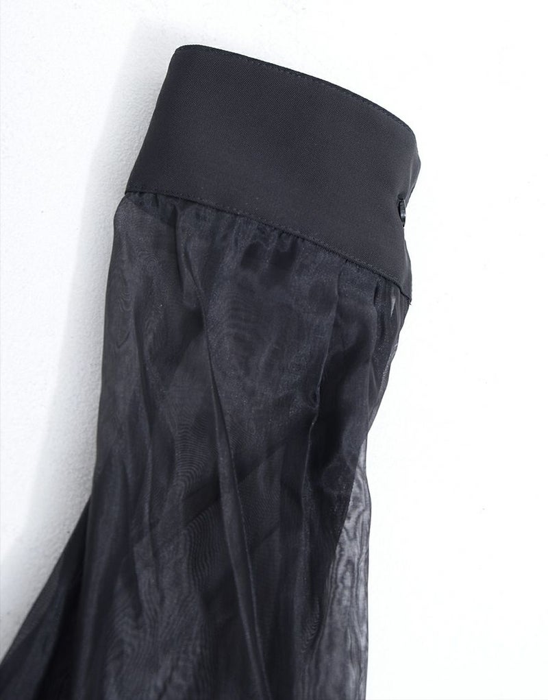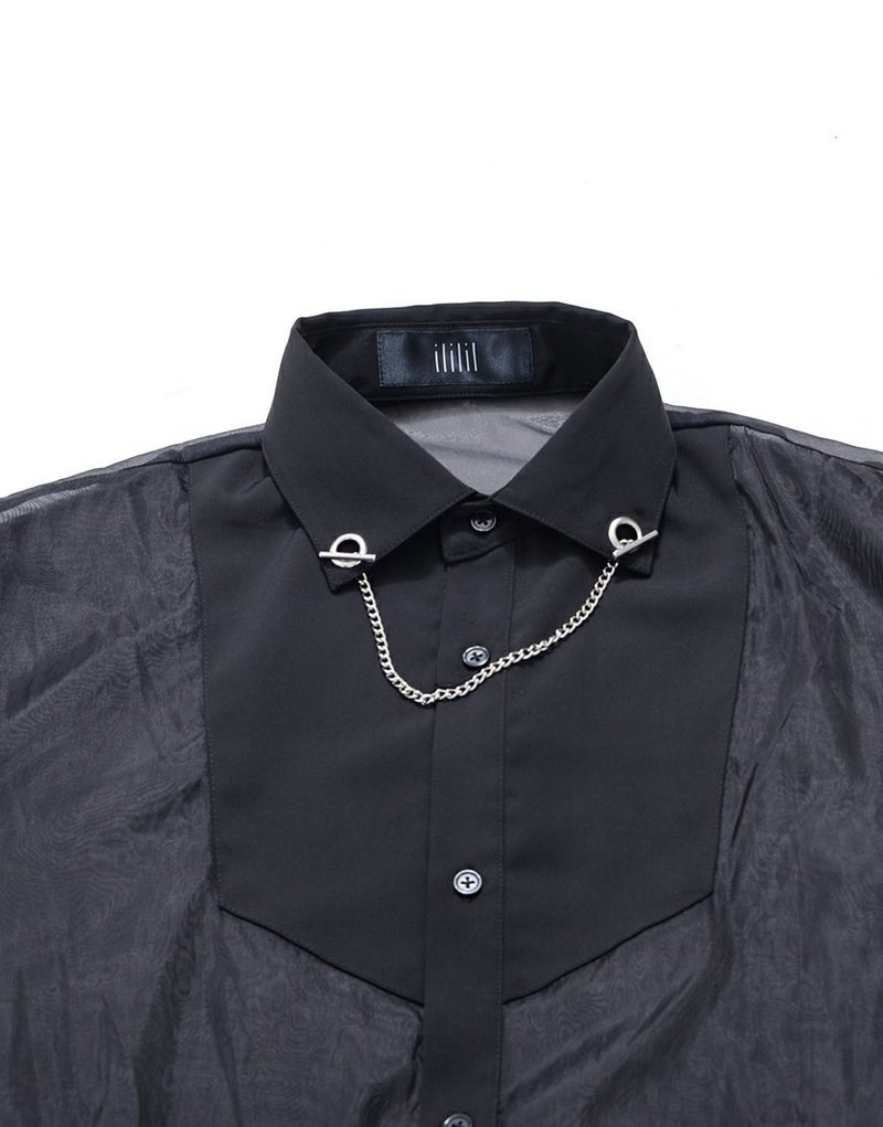 オーガンジー生地と若干の光沢があるシャツ生地を切り替えたデザインが特徴です。