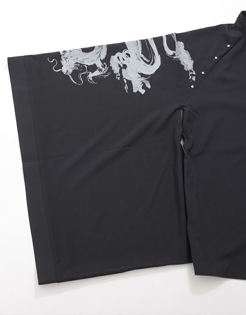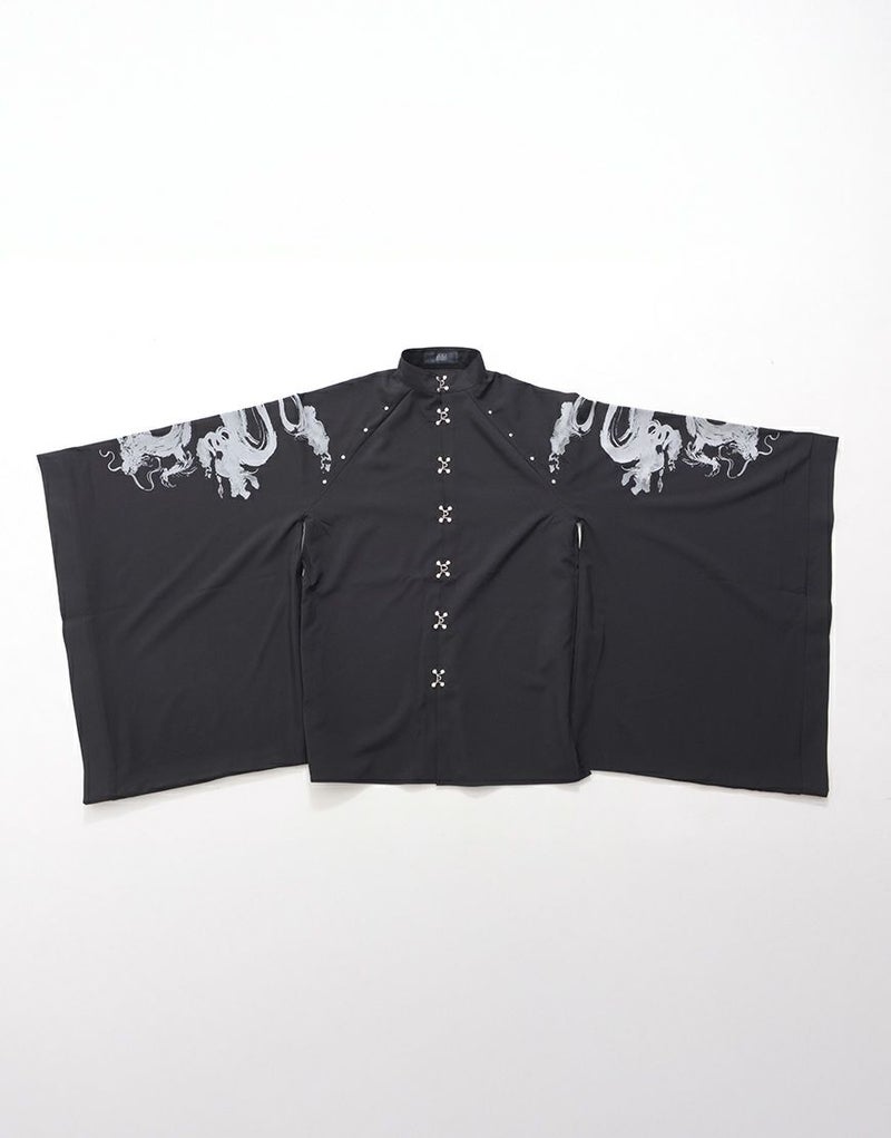 大きく垂れた袖と、両肩に施された迫力のある龍のデザインが特徴的です。