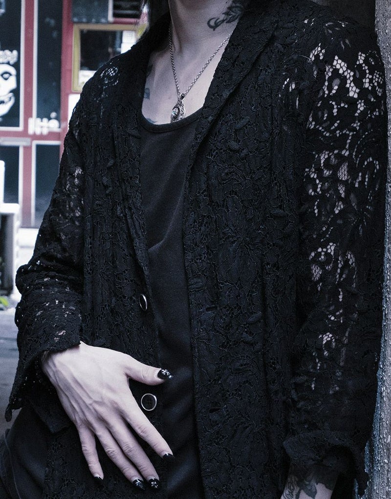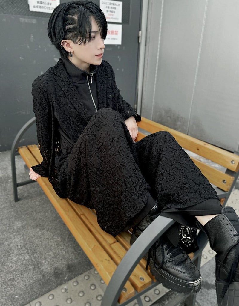 #ユニセックス #オーバーサイズ #ジェンダーレス #レースジャケット #モード #モノトーン #ブラックコーデ #セットアップ可