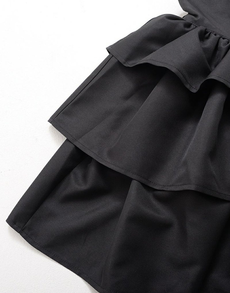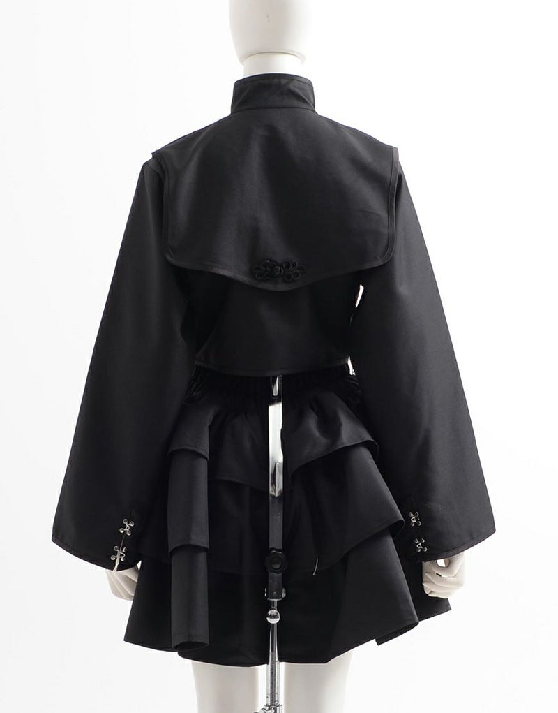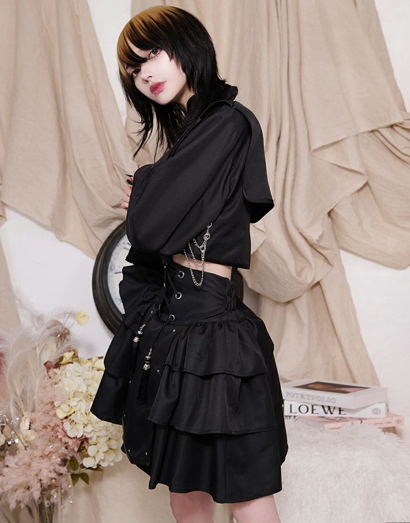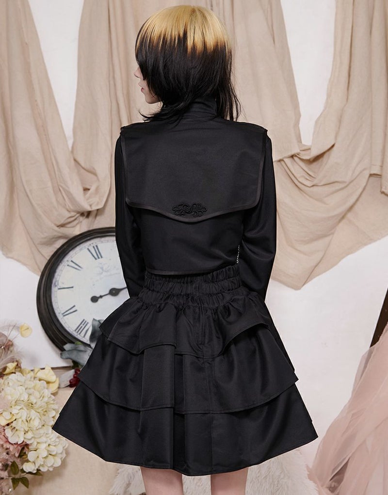 スカートはハイウエストデザインにレースアップディテールを施し、チャイナドレス風の前垂れとフリルスカートの組み合わせが、可愛らしさをさらに引き立てます!!