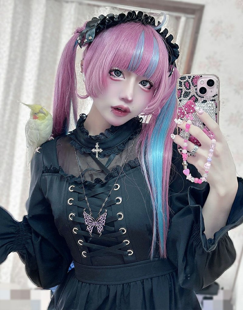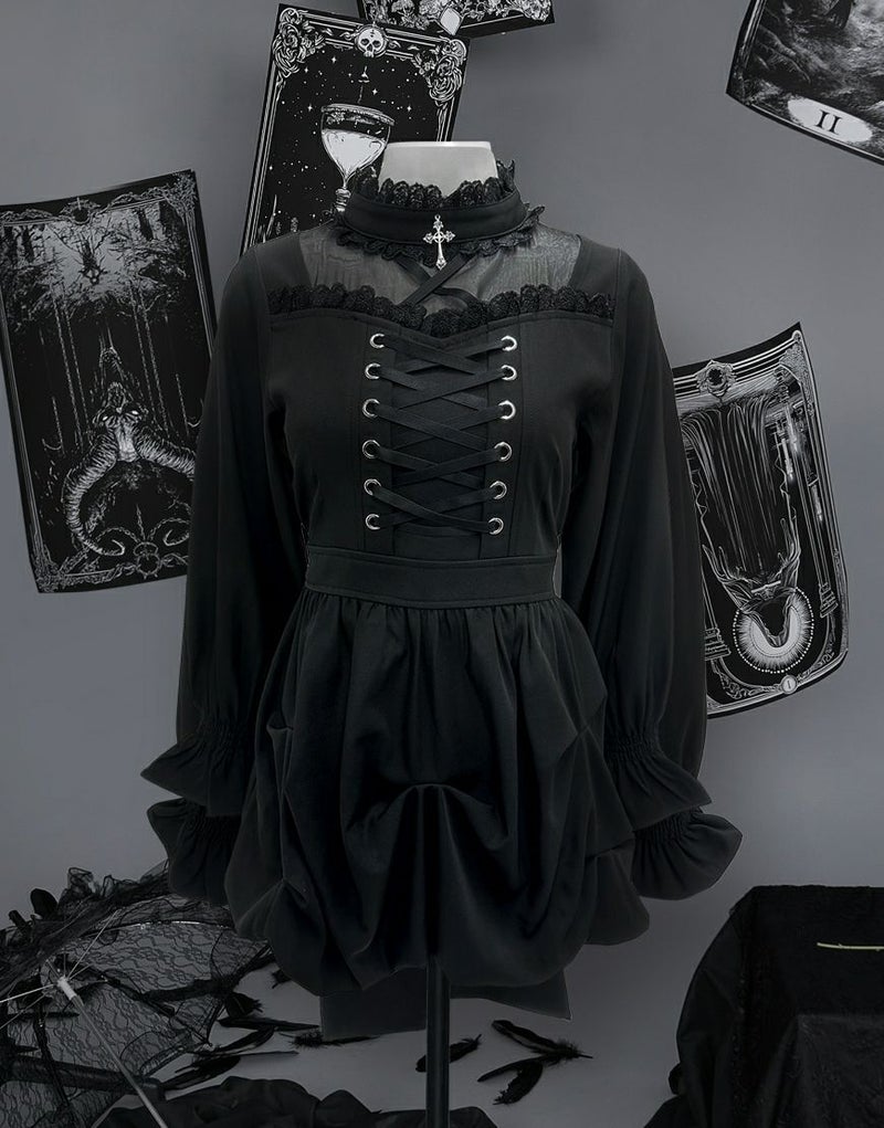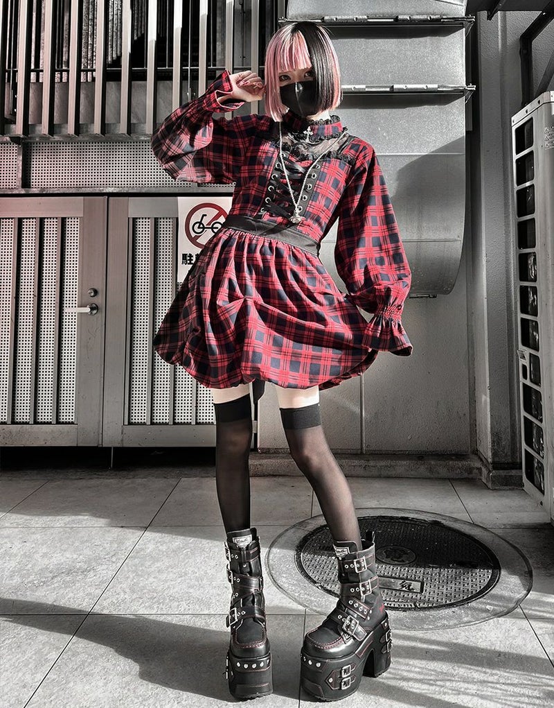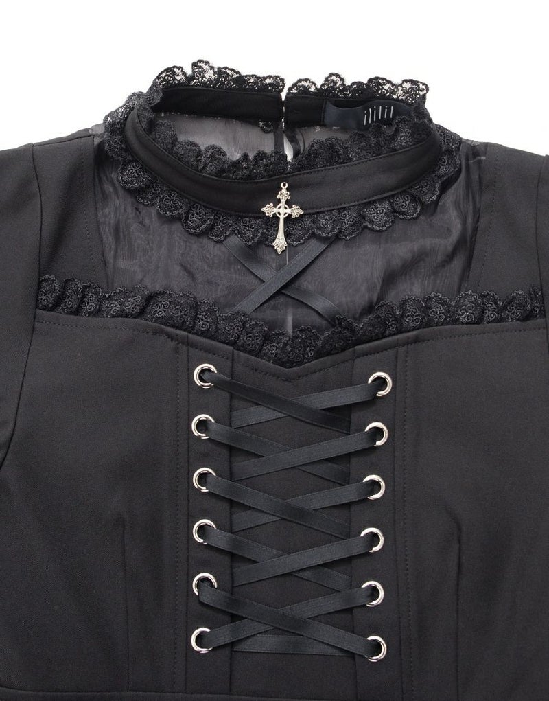 フロントのレースアップデザインと首元のチャームが地雷ちゃん感があって可愛い♪