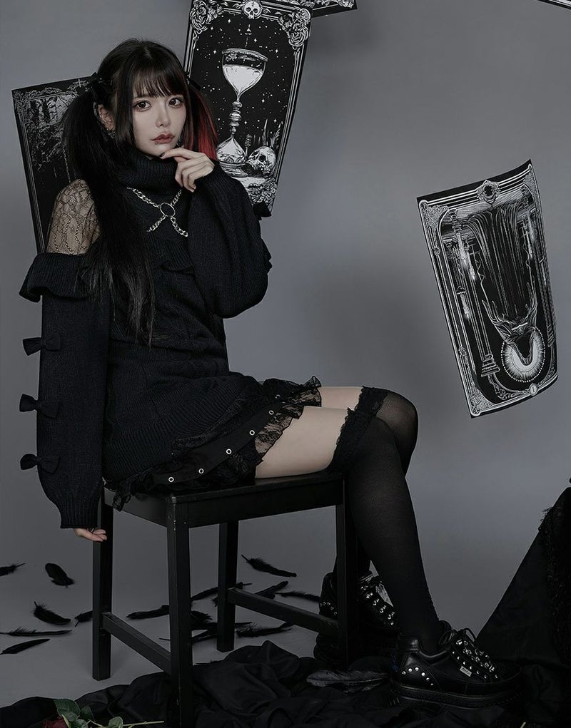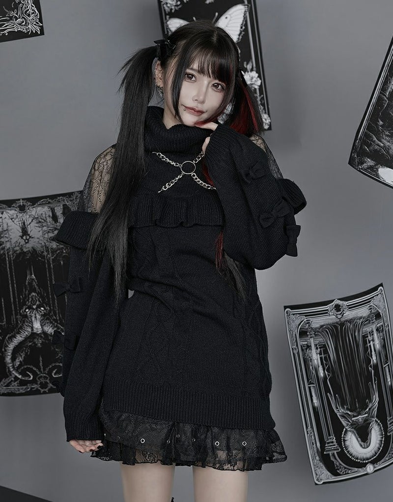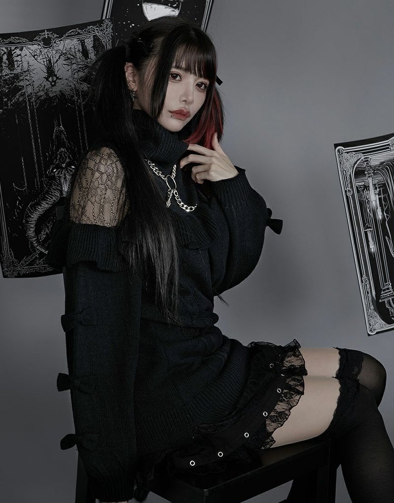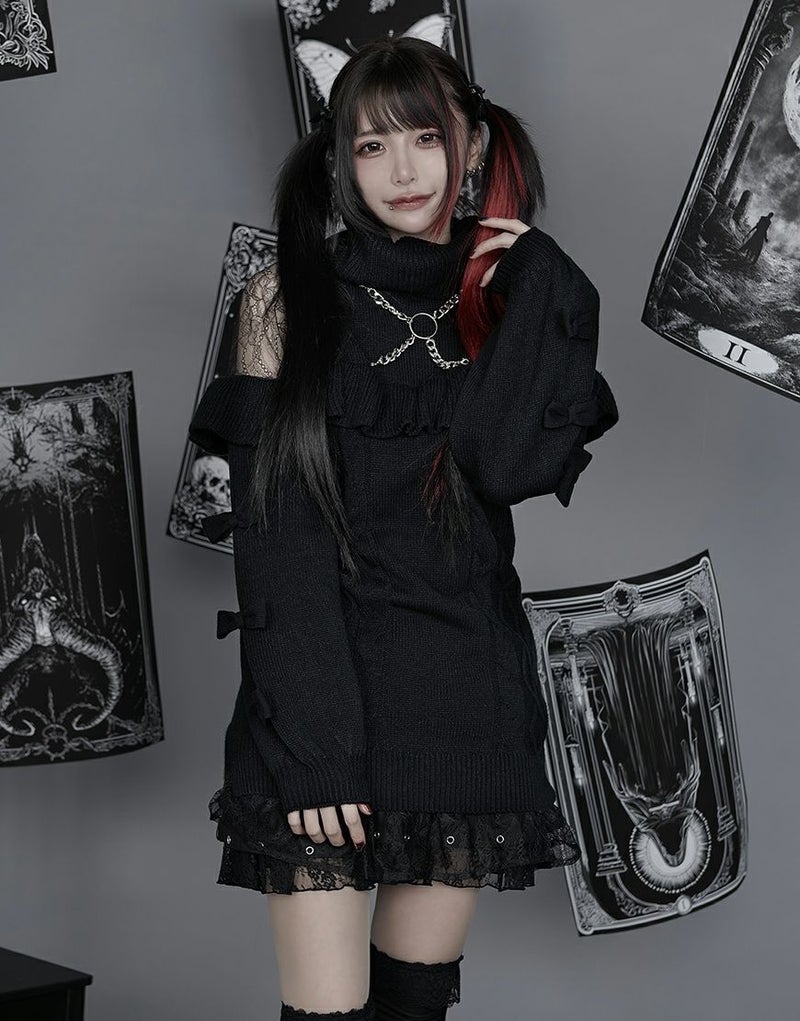 肩部分はレース切り替えデザインで、地雷感が際立ちます♡