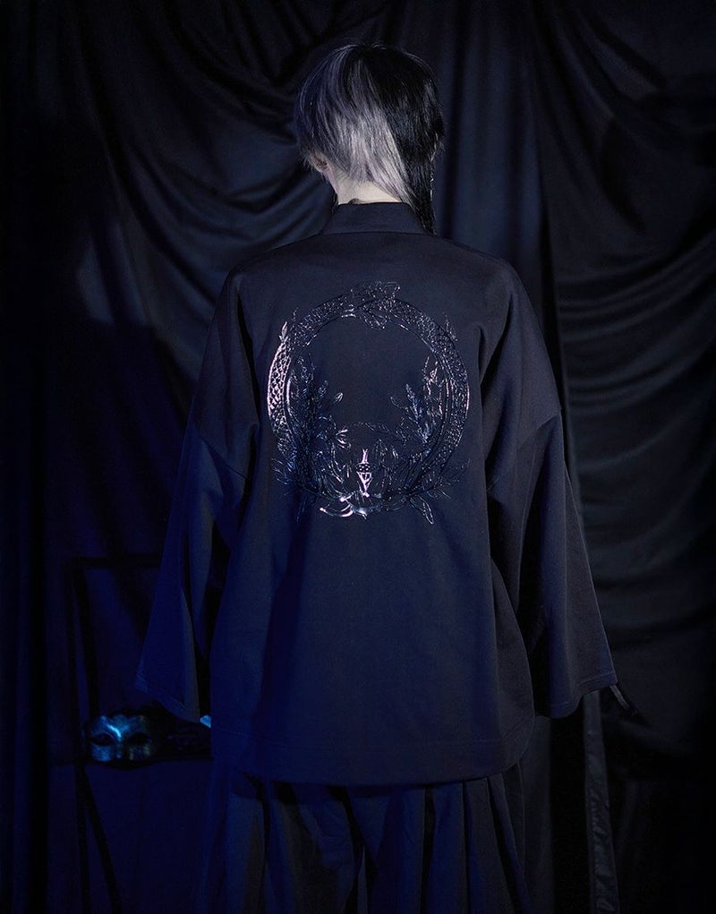 ◆背中部分に同色の蛇と華のオリジナルデザインが施された着物風羽織り。