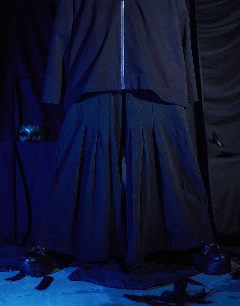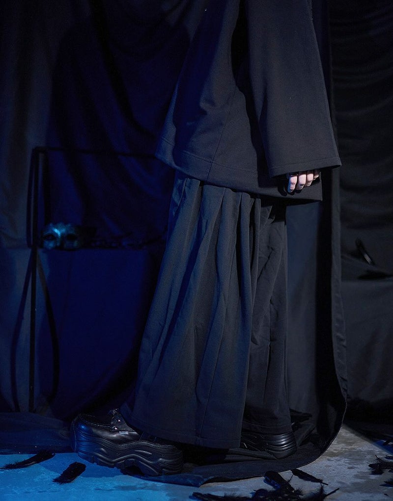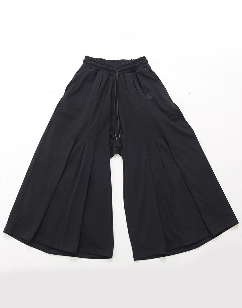 ◆裾が大きく広がったワイドシルエットの袴風パンツ。