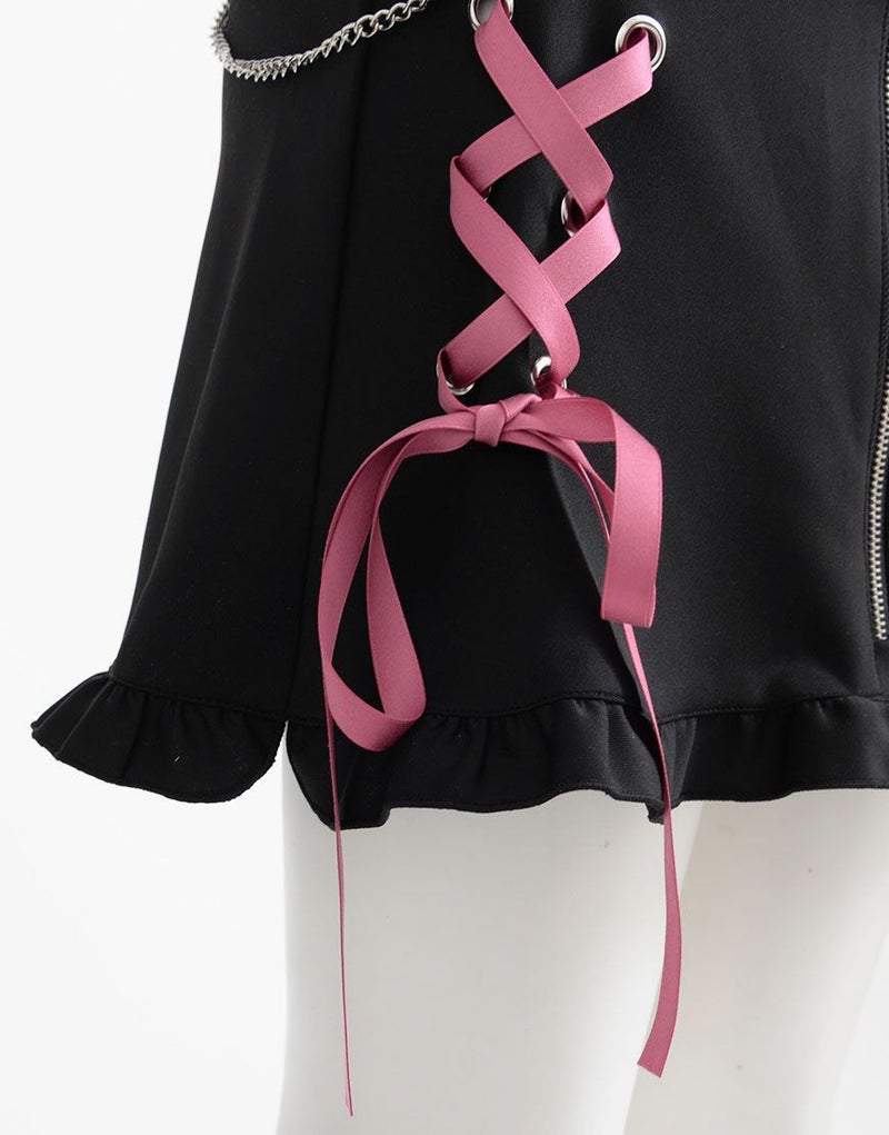 スカートにはフロント左右にレースアップデザインを施し地雷感を演出しました☆