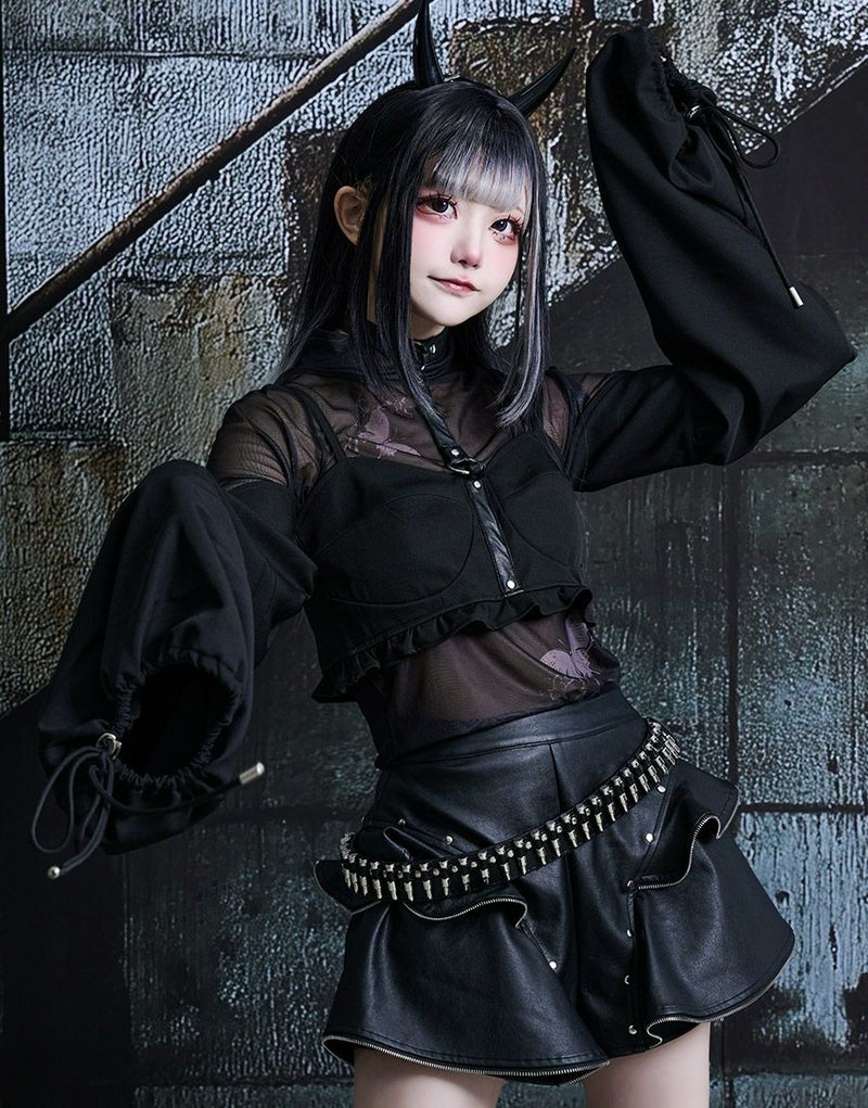 取り外し可能なチョーカーや、裾のフリルなど細部までこだわったディテールで、甘さと毒っぽさの絶妙なバランスに仕上げました。