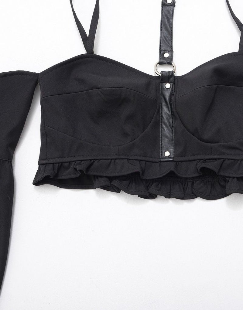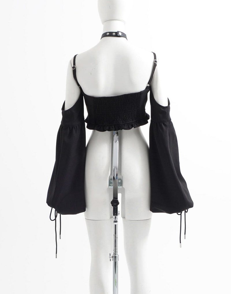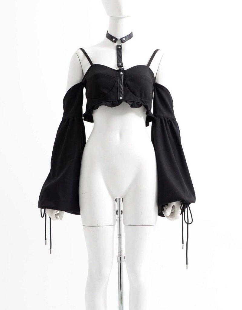 バルーンスリーブが目を惹く、ビスチェデザインのトップス。