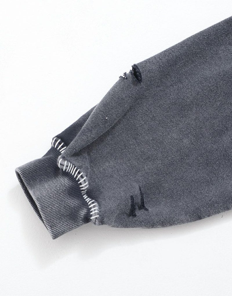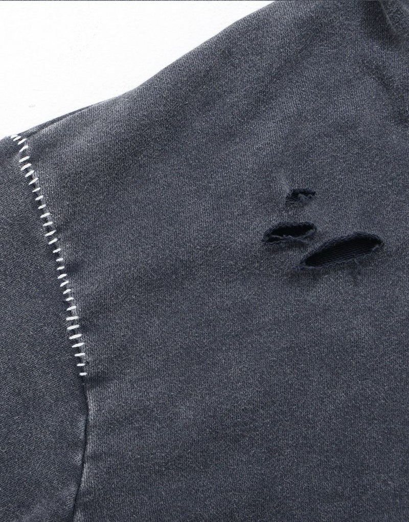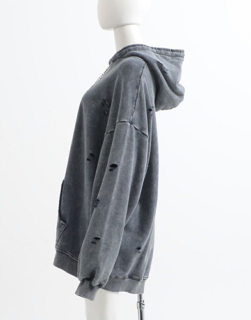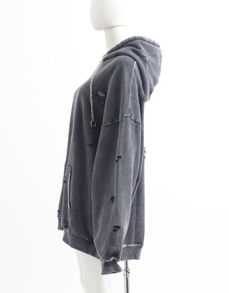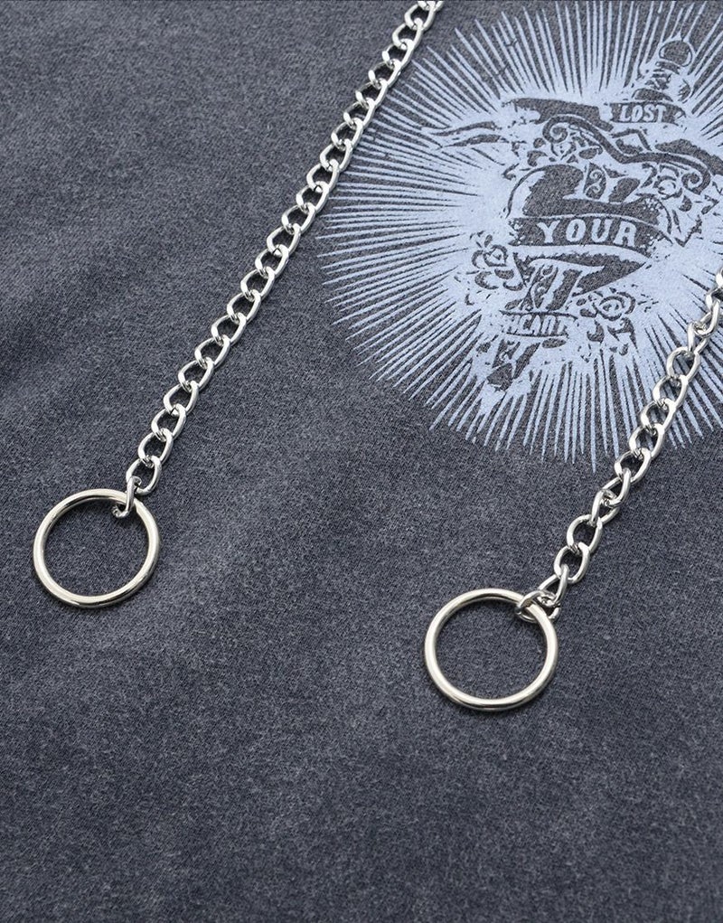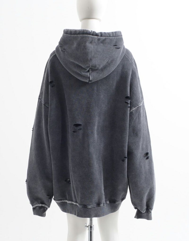 ililil【イルイルイル】よりlost your heartクラッシュ加工パーカーが登場です。 フロントにダガーハートグラフィックがされたプルオーバーパーカー。 所々にダメージ加工を施しヴィンテージ感を演出。ポイントでポケットや袖、フードの配色ステッチデザインと更にドローコードのリングチェーンがアクセントに。 ビッグシルエットでメンズ、レディースを問わず、ユニセックスでご着用頂ける一押しパーカーです。
