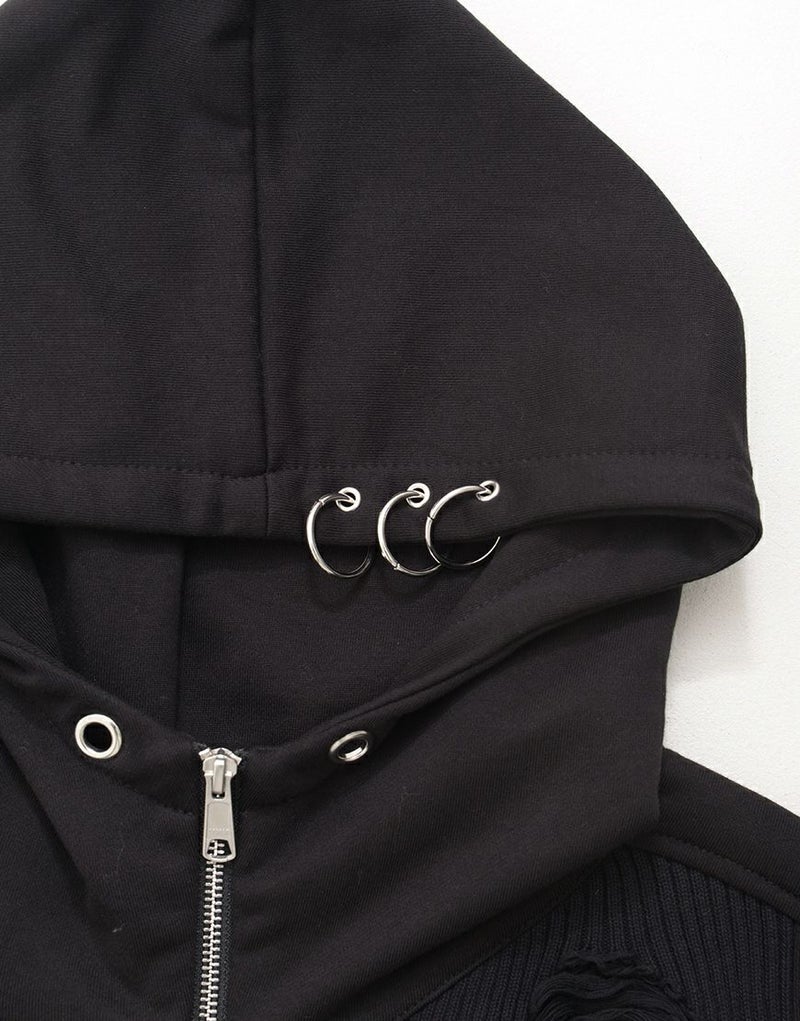フードにはリングパーツを配置し、金属的な装飾が全体に無機的なアクセントをプラス。