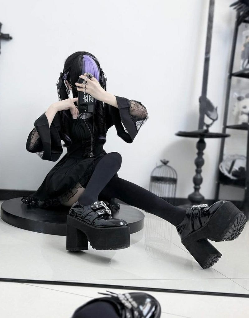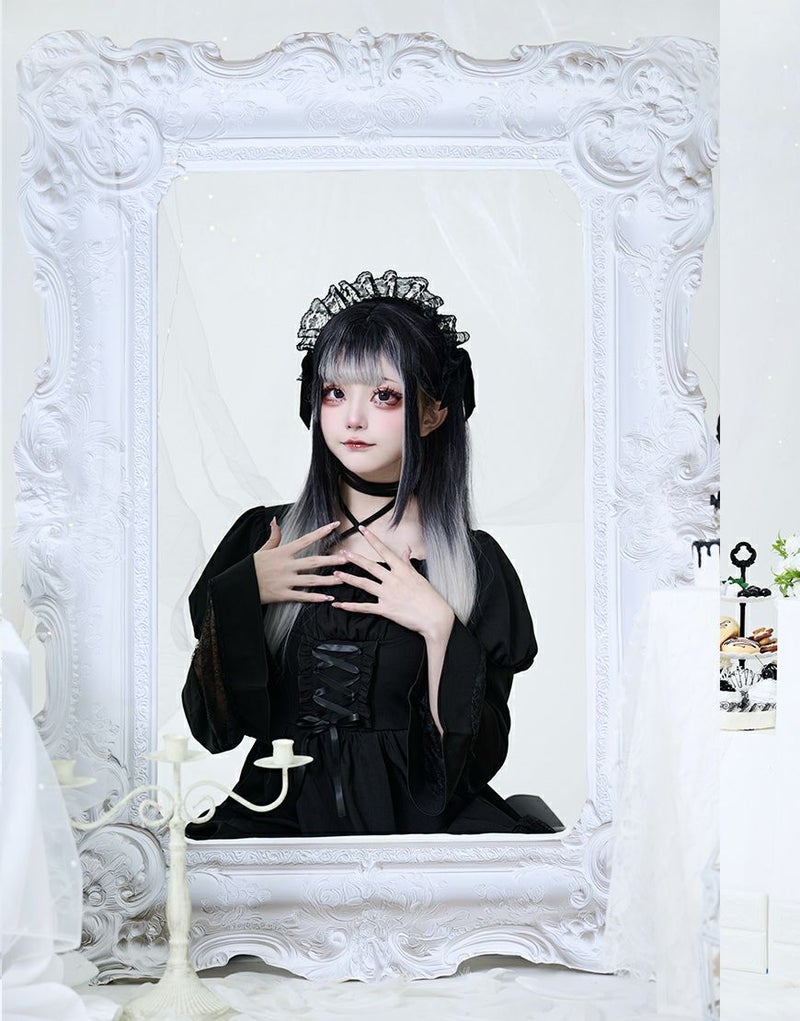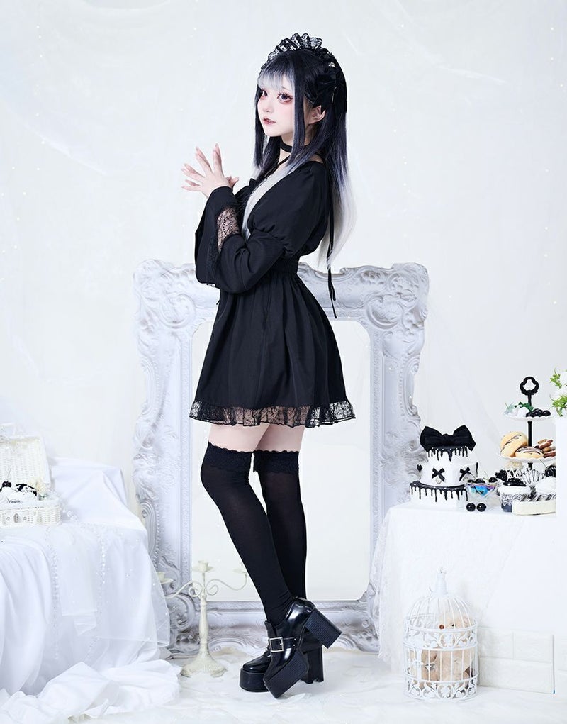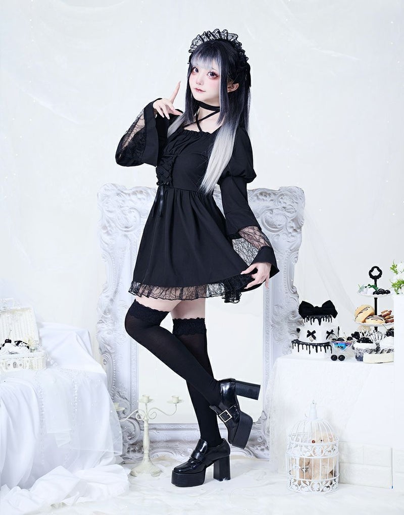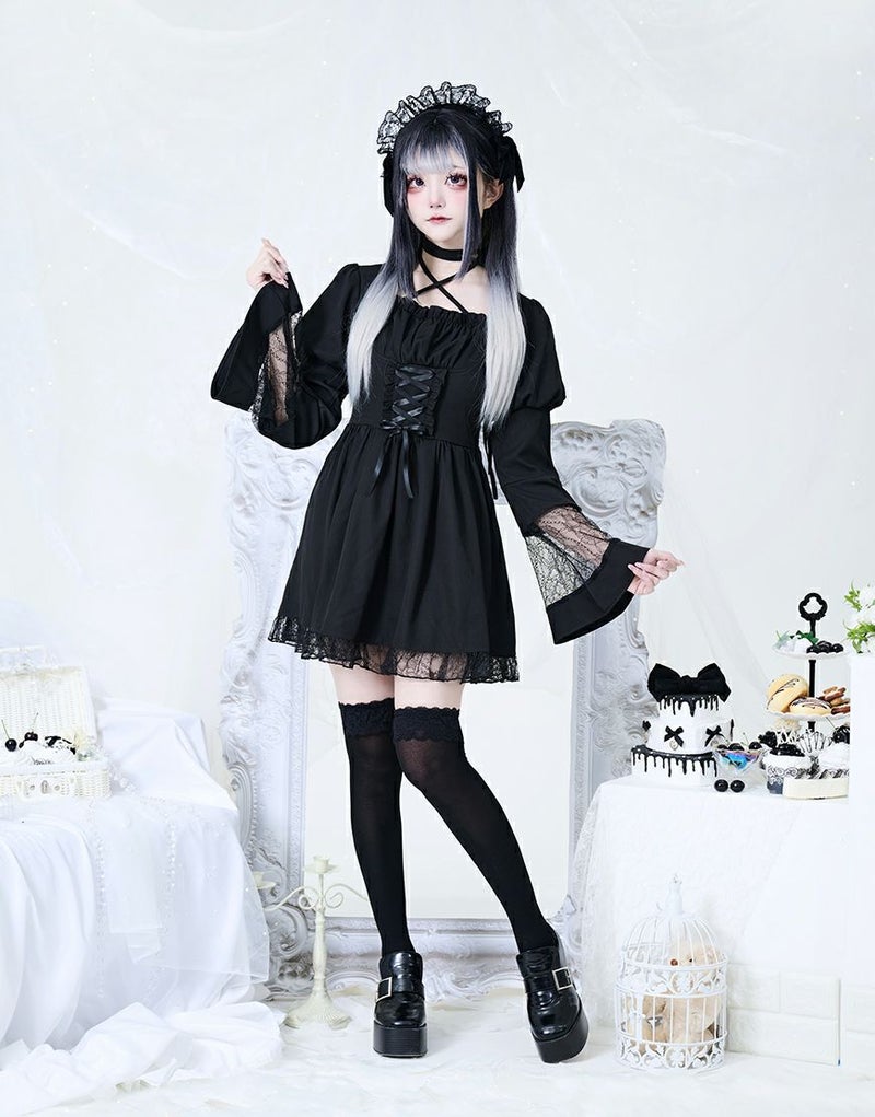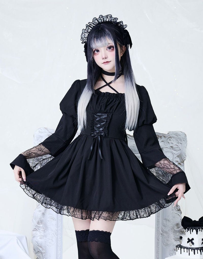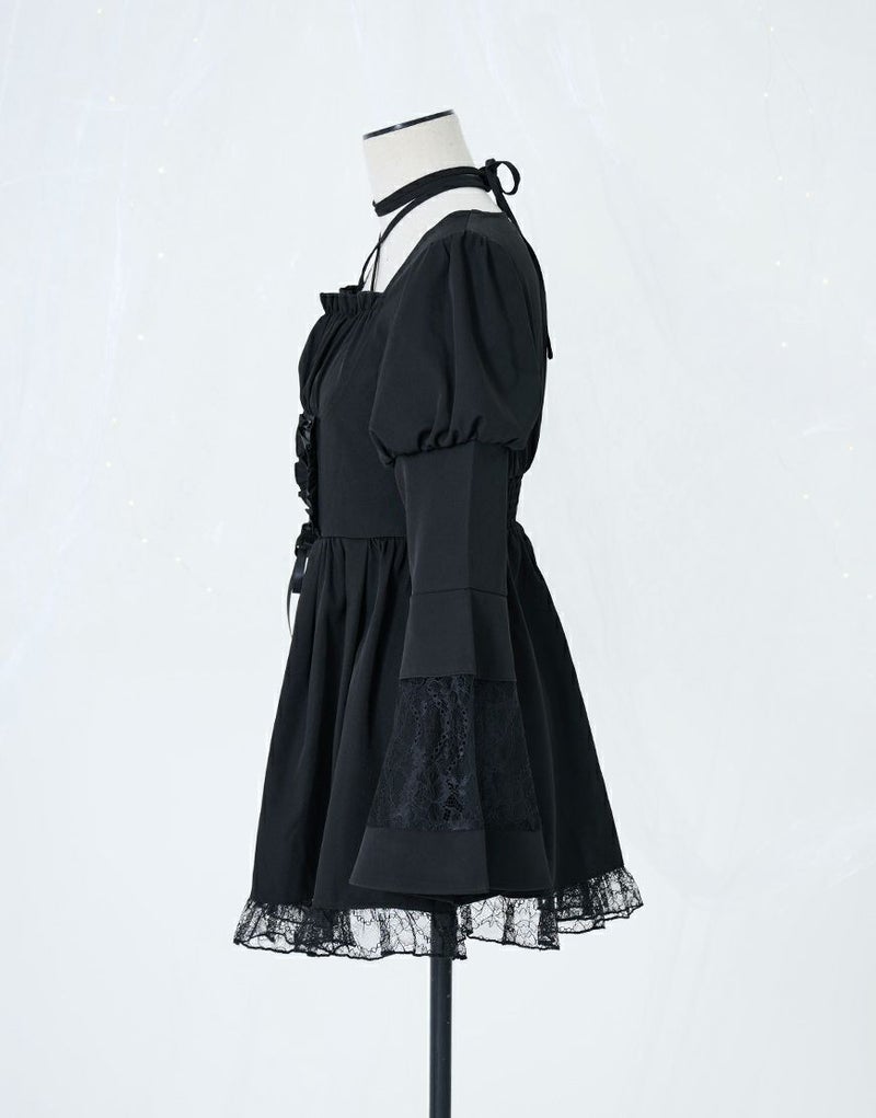 フロントウエスト部分はレースアップデザインで、地雷らしさをしっかり演出してくれます。
