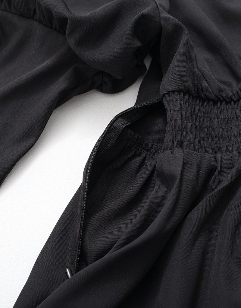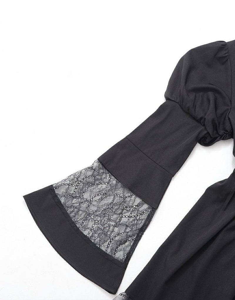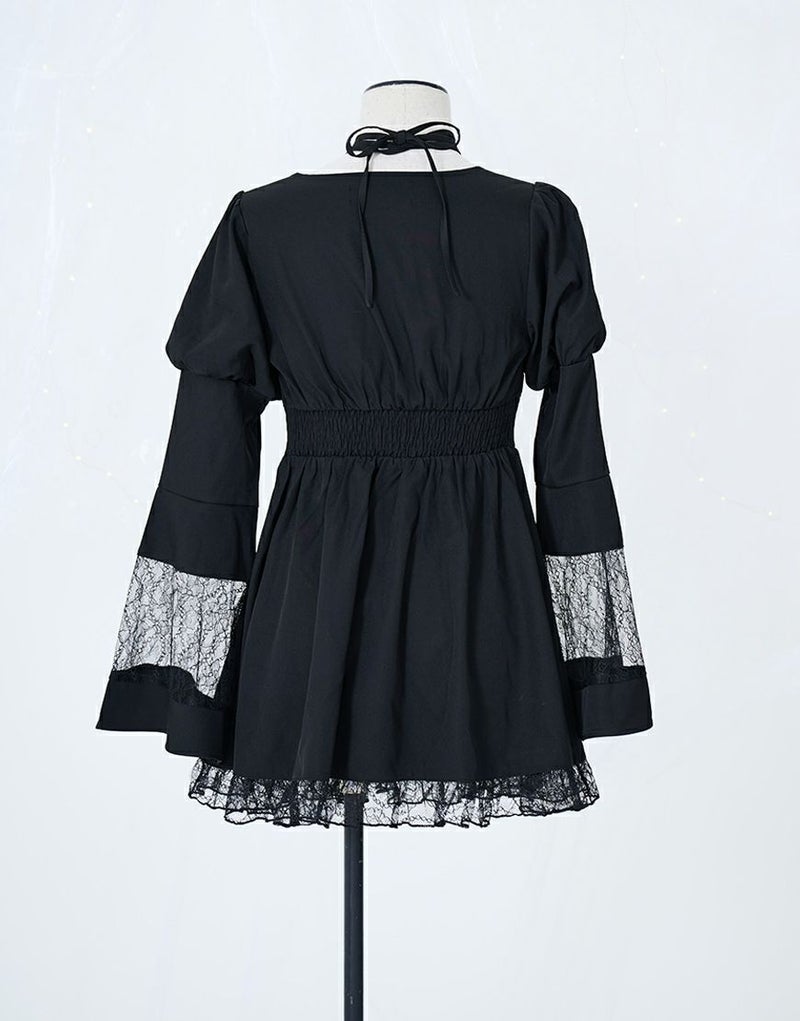 腕の透け感あるレース素材が目を引く、華やかで存在感のあるミニワンピ