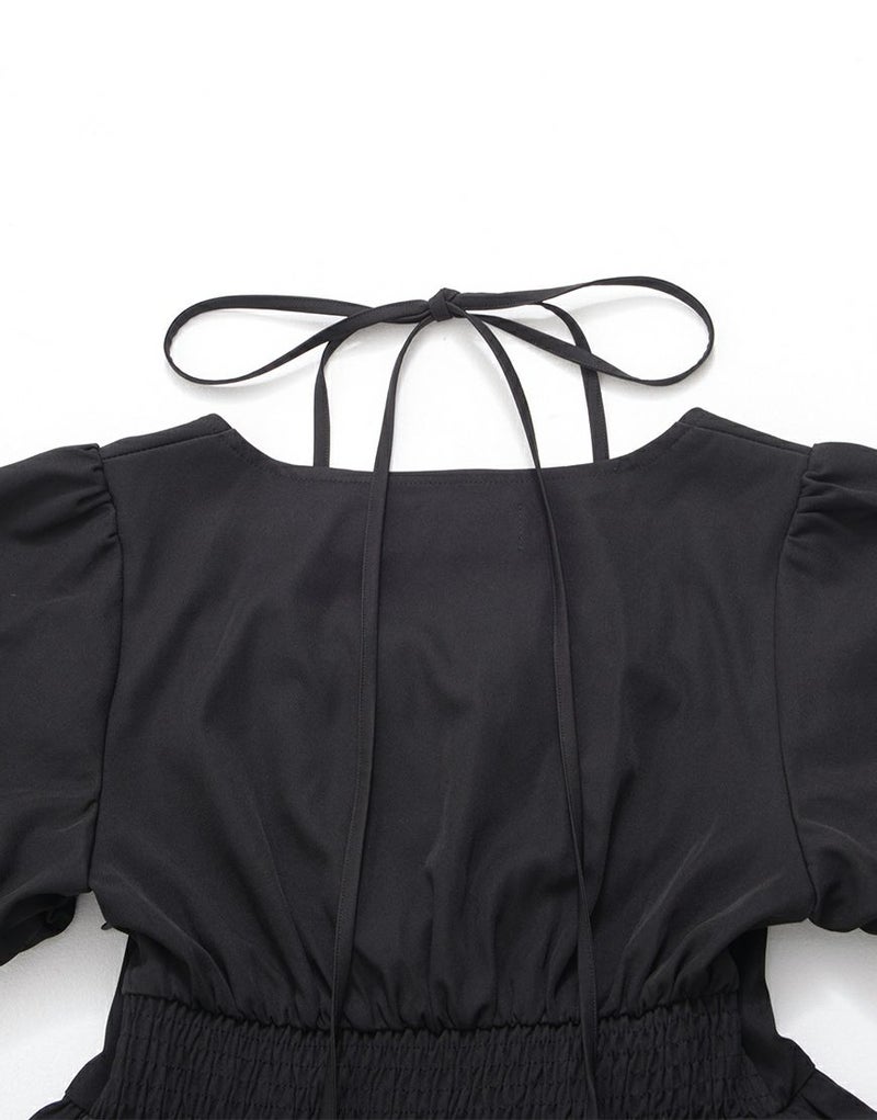 首元は紐を巻きつけて調整するチョーカー風仕様になっており、フィット感の調整が可能◎