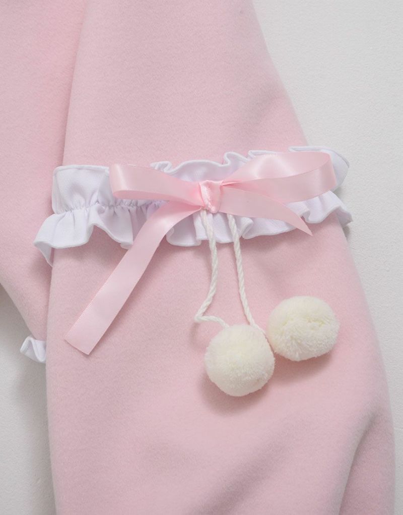 袖のフリル上にはリボンとポンポンもついていて横から見てもかわいい印象に!