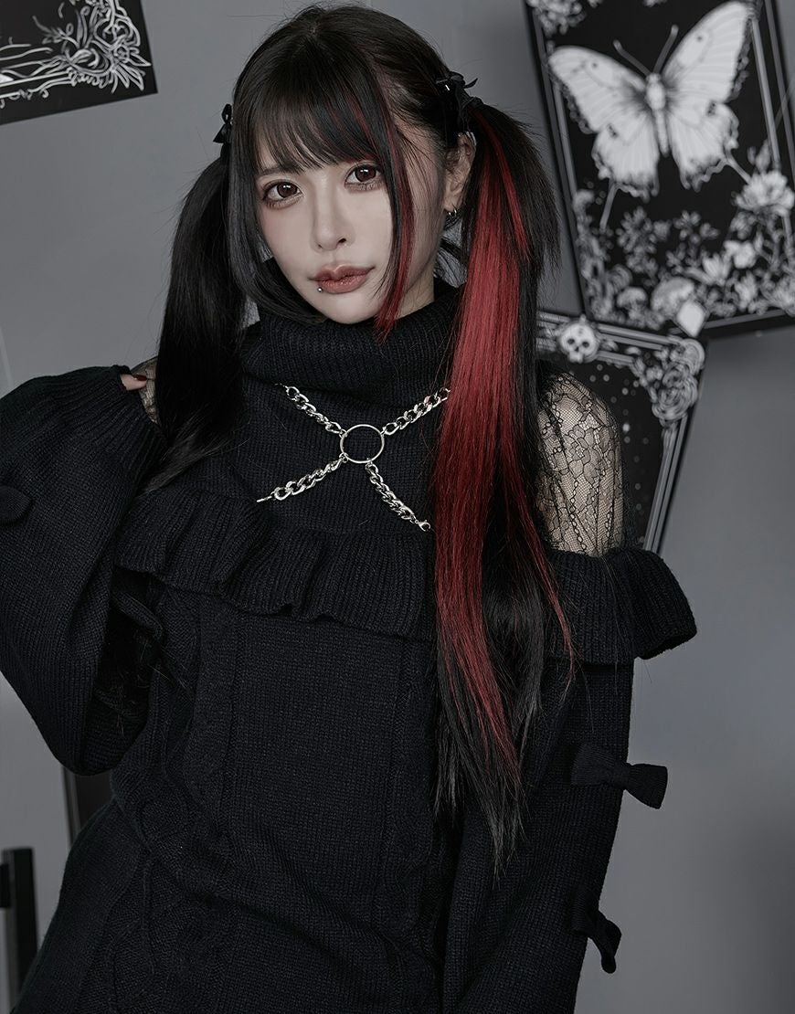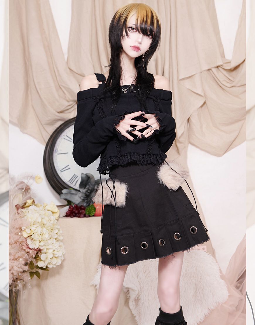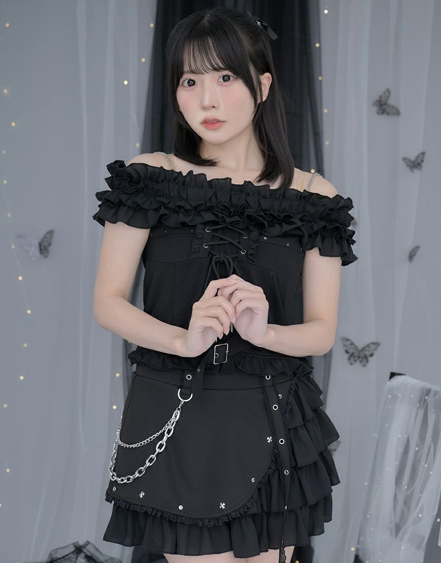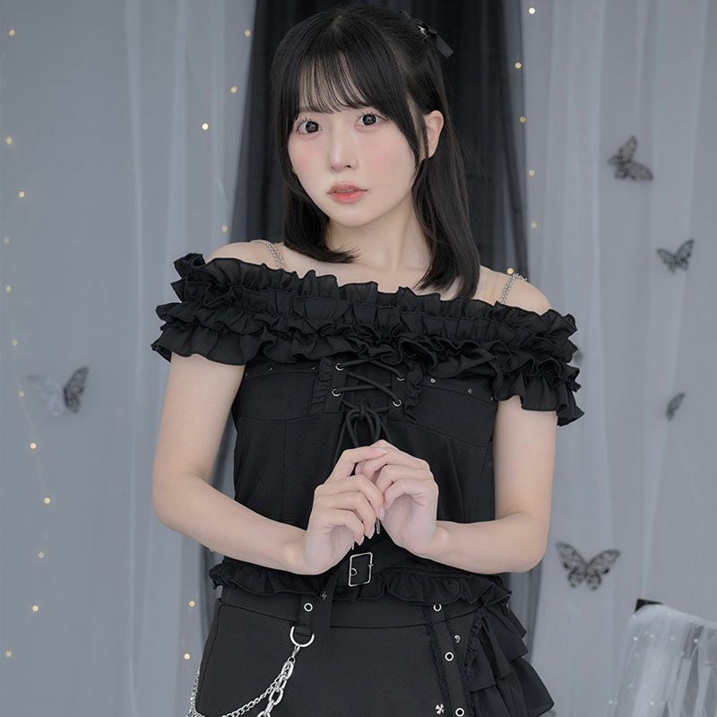ililil 【沼確定】地雷ちゃんのあざとレースアップオフショル2wayトップス/全1色