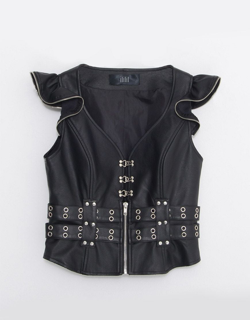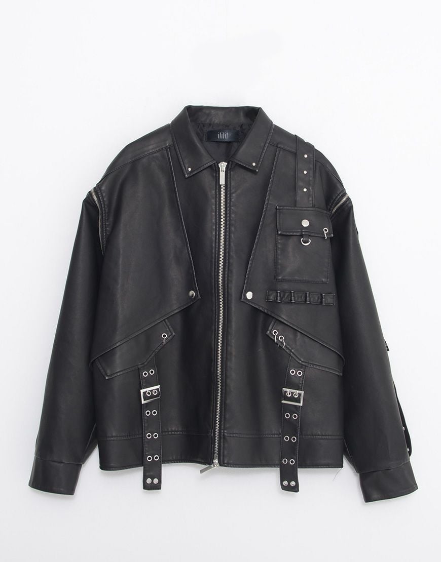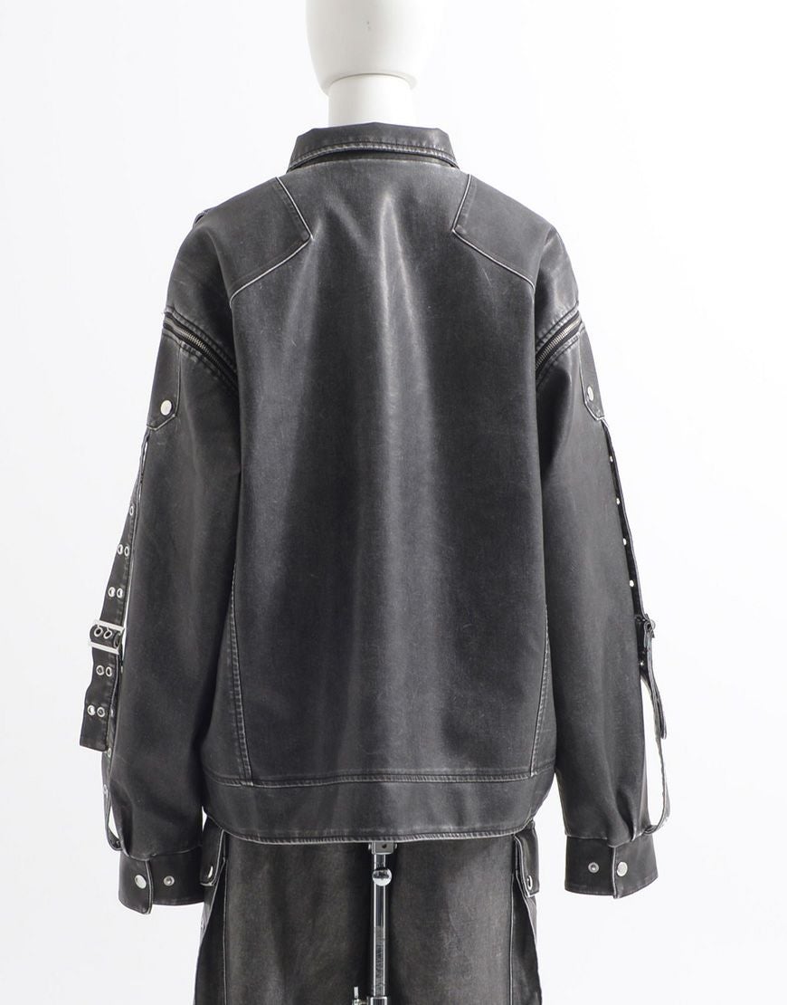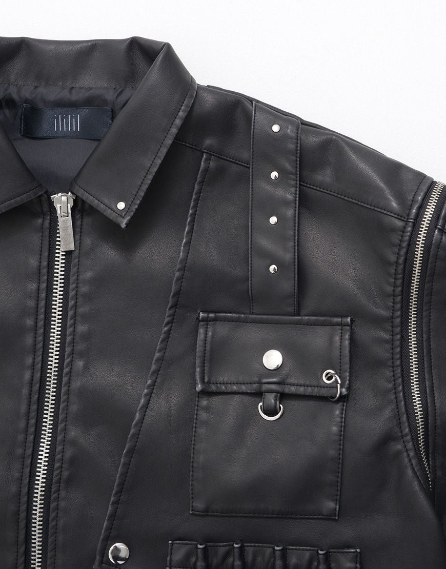 ililil 2way gimmick synthetic leather blouson 2wayヴィンテージ加工合成皮革ブルゾン/全2色