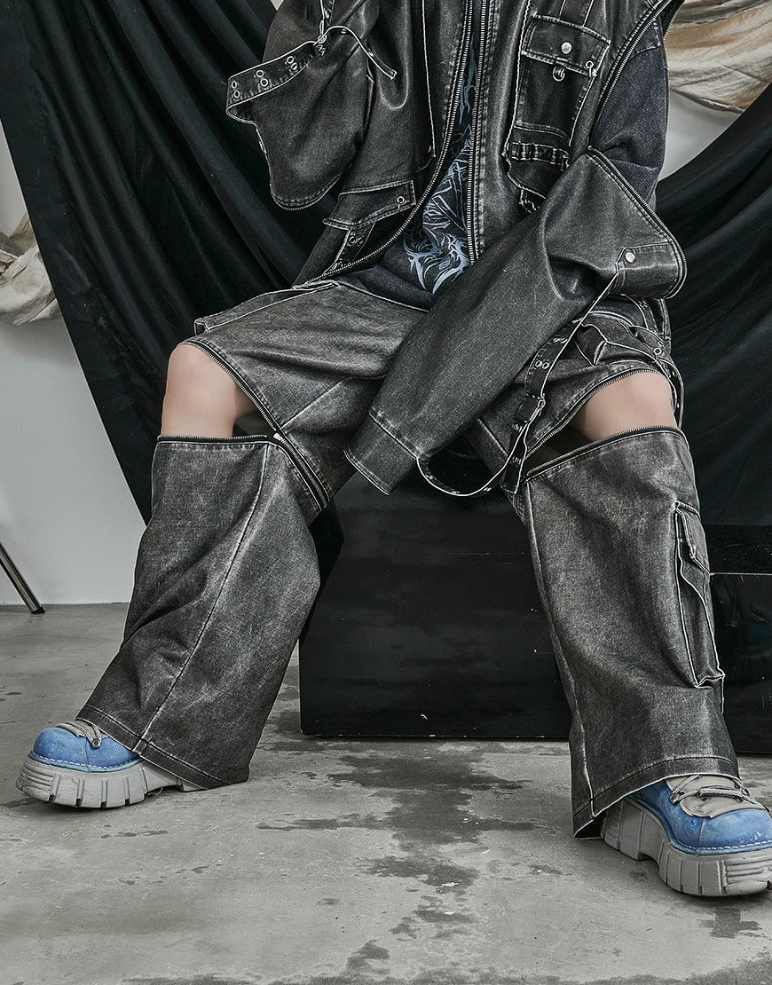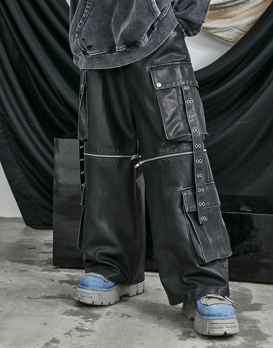 ililil 2way gimmick synthetic leather cargo pants 2wayヴィンテージ加工合成皮革カーゴパンツ/全2色