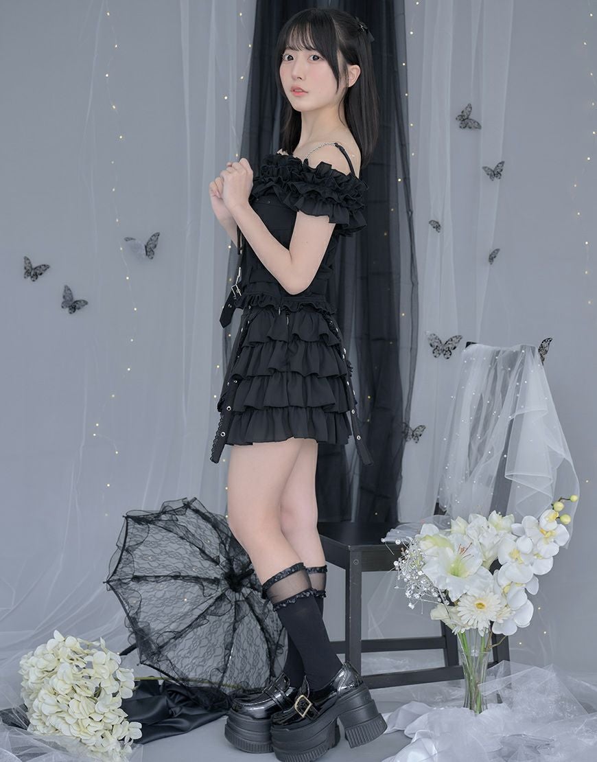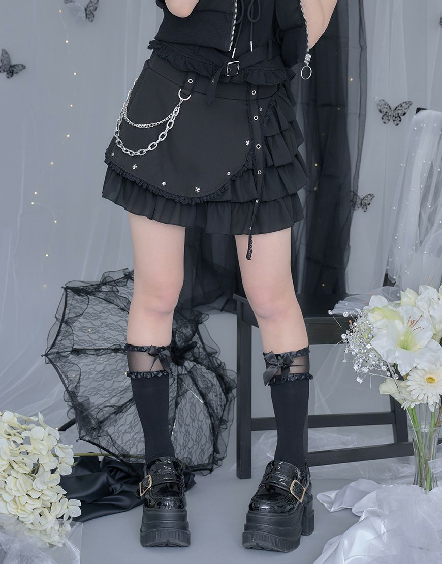 ililil 地雷ちゃんの病みかわチェーン付きフリルスカート~恋と沼の狭間~/全1色
