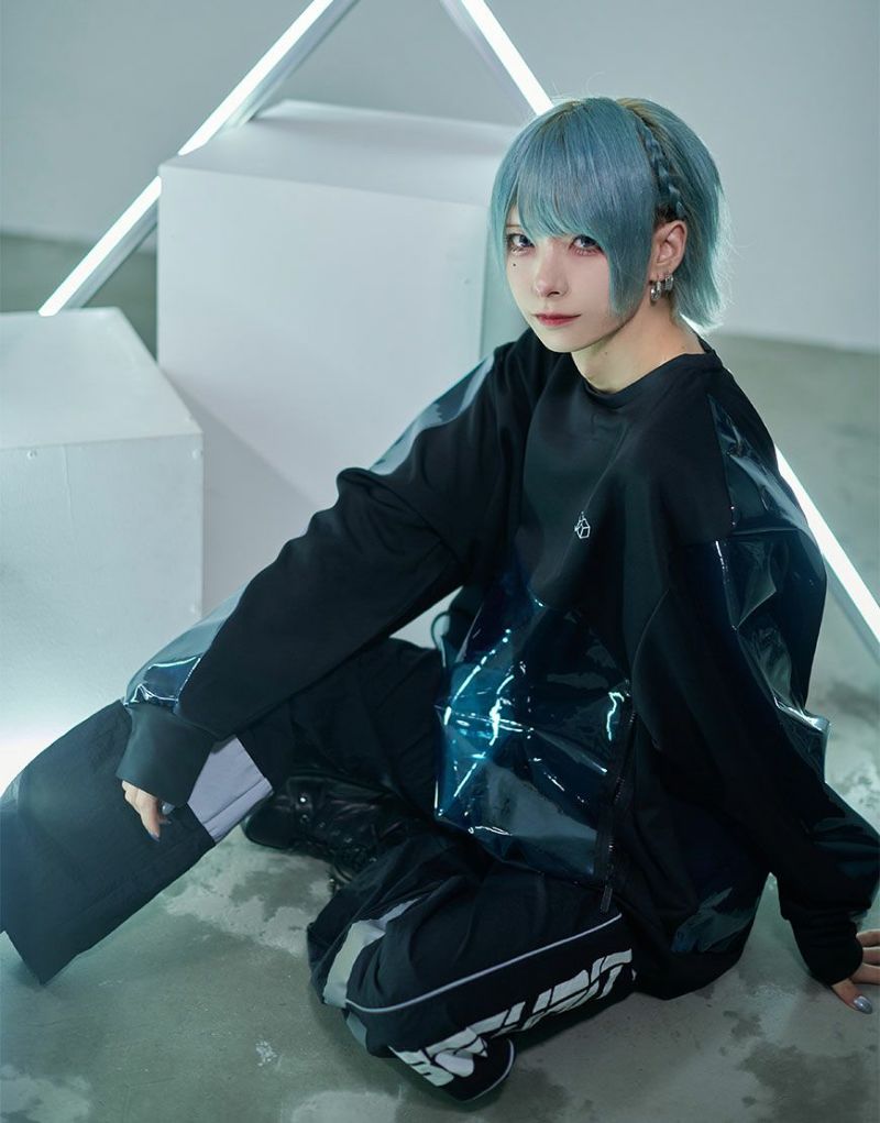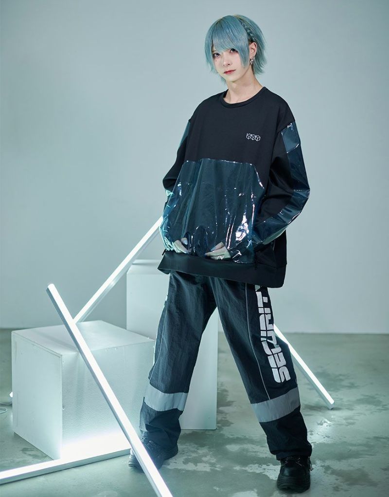 PVC素材切り替えデザインで近未来を意識したプルオーバースウェットです。