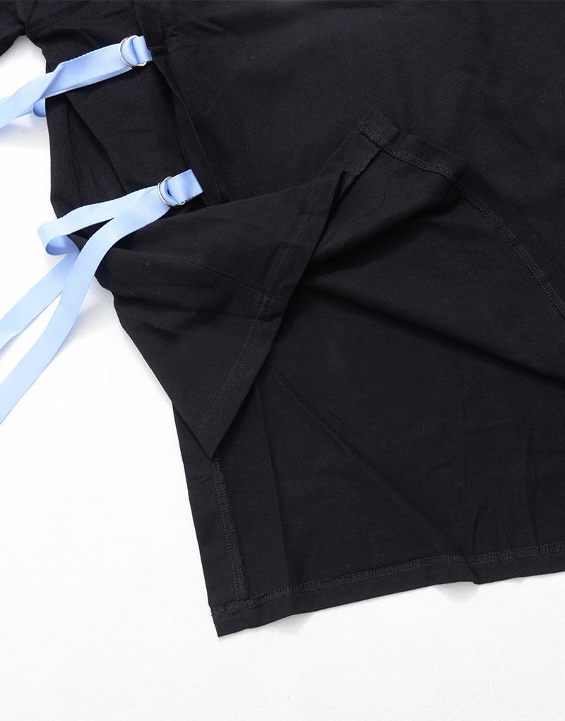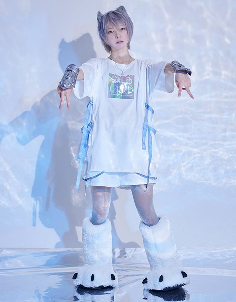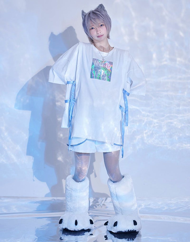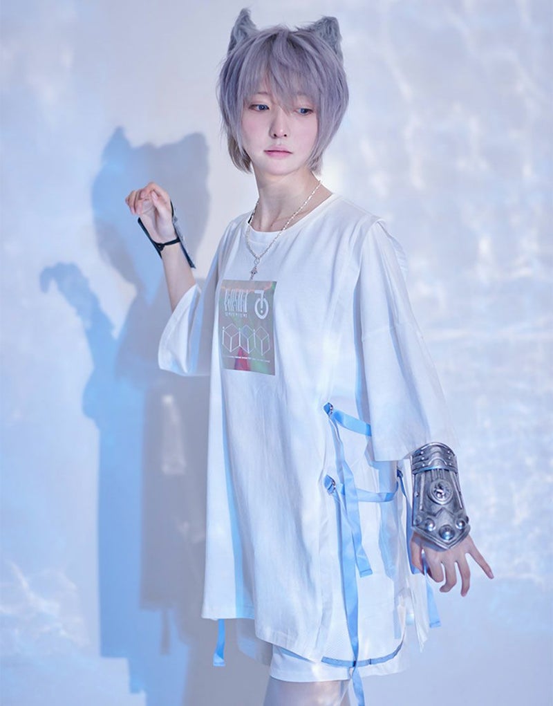 ililil【イルイルイル】よりぴかぴかホログラムTシャツが登場です。 フロントにオーロラ箔による大判ロゴプリントが施されたカットソー。 両サイドにデザインされた2連のベルトがアクセントに 前後で丈の長さが違うのもポイント♪ オーバーサイズで仕上げメンズ、レディースを問わず、ユニセックスで着用可能です。 #Tシャツ #半袖 #プリント #cyber #サイバー #天使界隈 #ユニセックス #ジェンダーレス