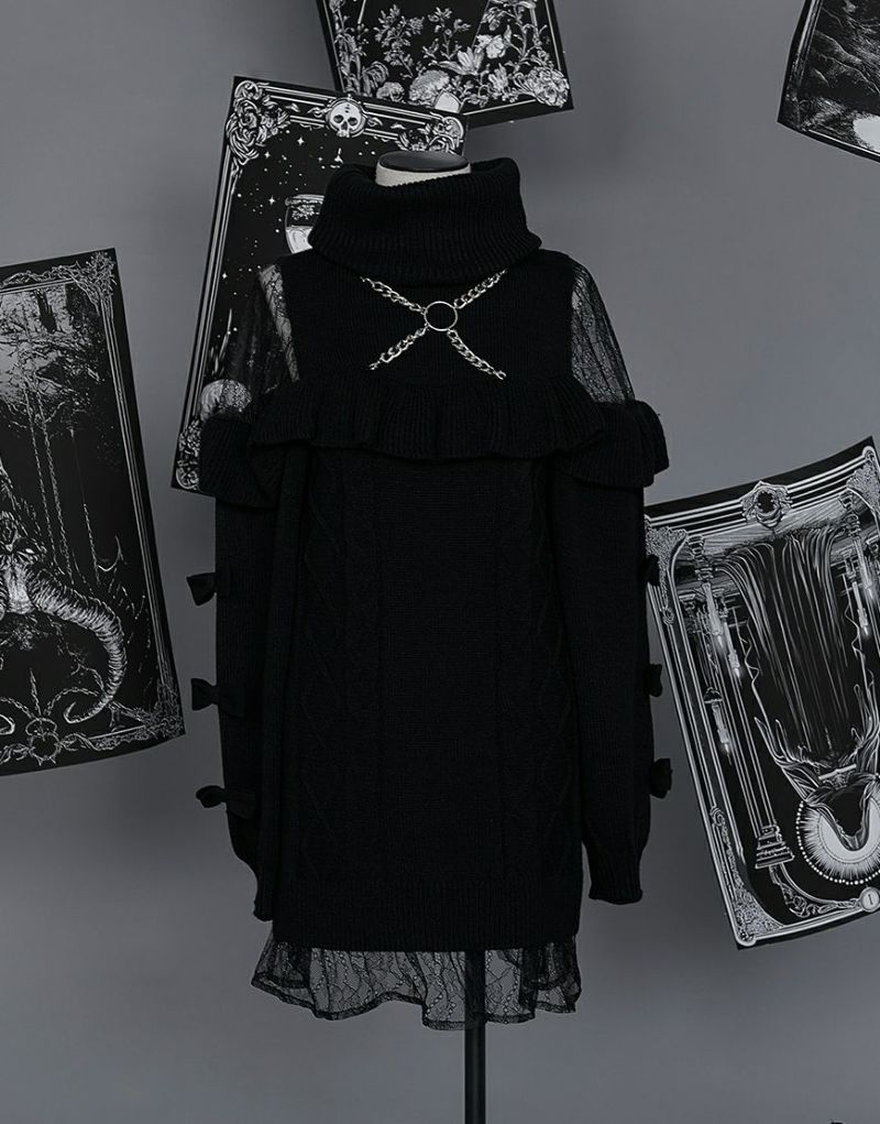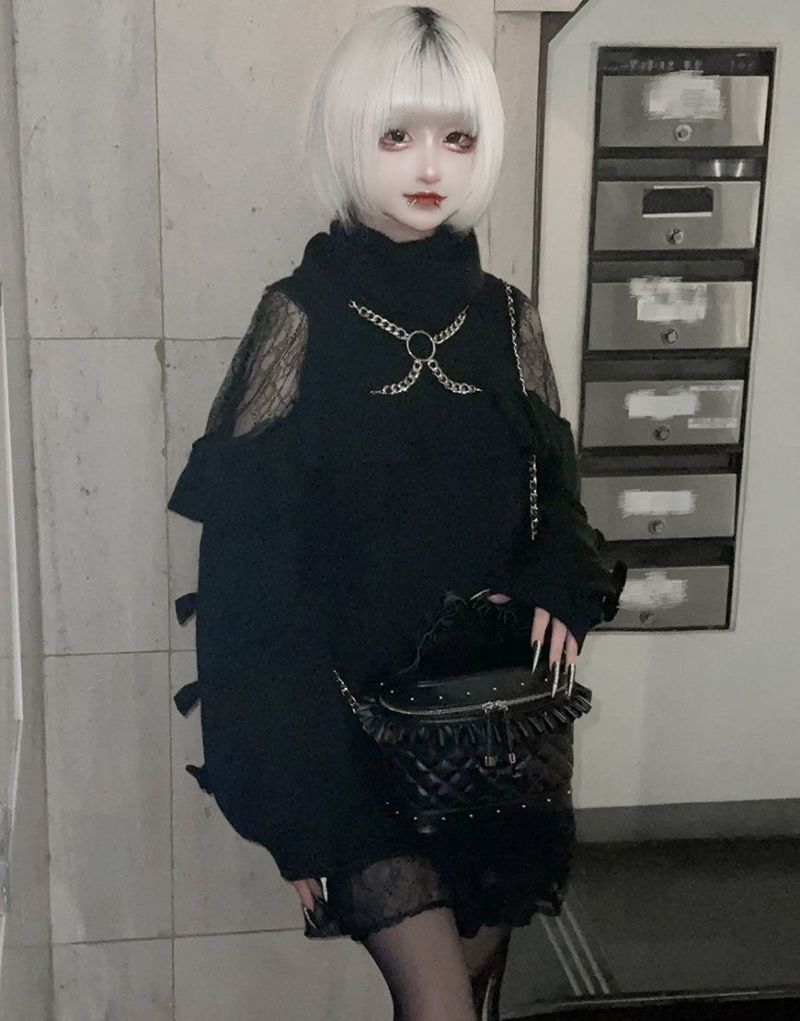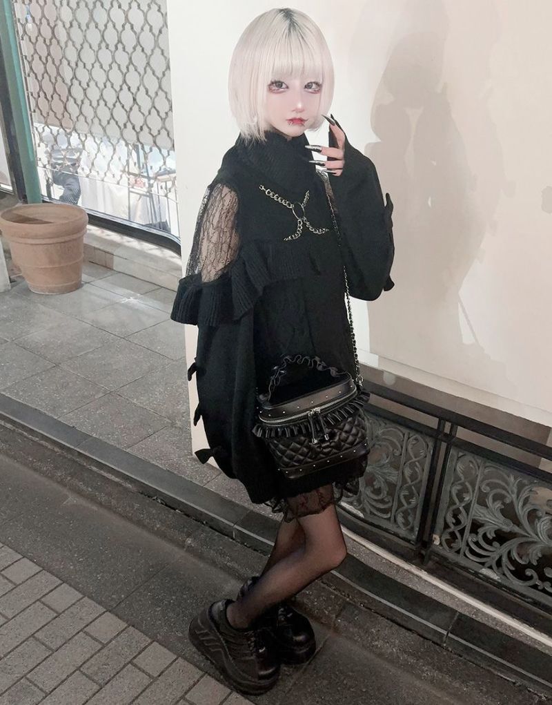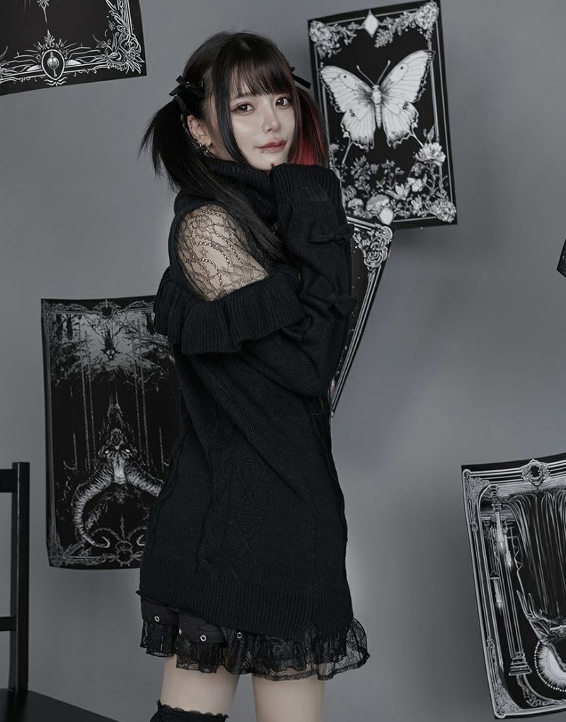 肩部分はレース切り替えデザインで、地雷感が際立ちます♡
