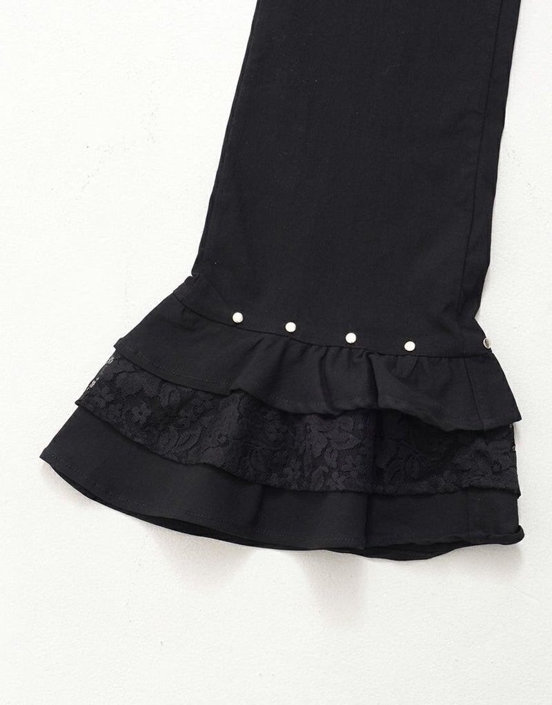 裾にはフリル×レースを贅沢に重ねた3段ヘムデザインで、動くたびに揺れて視線を奪う。