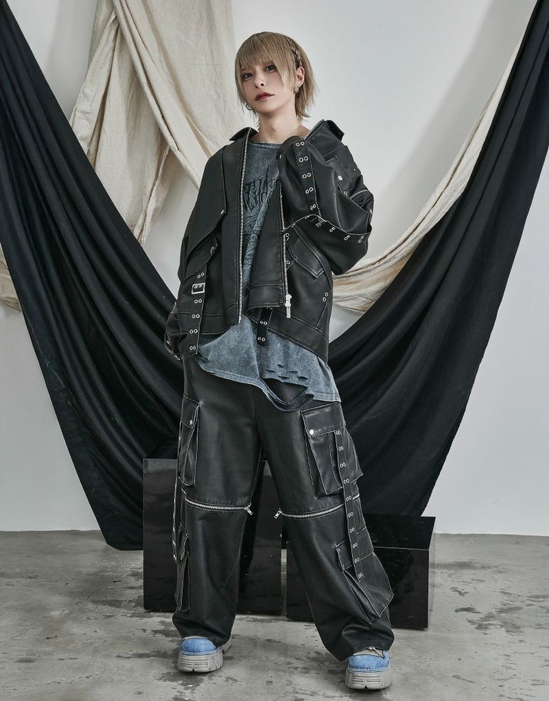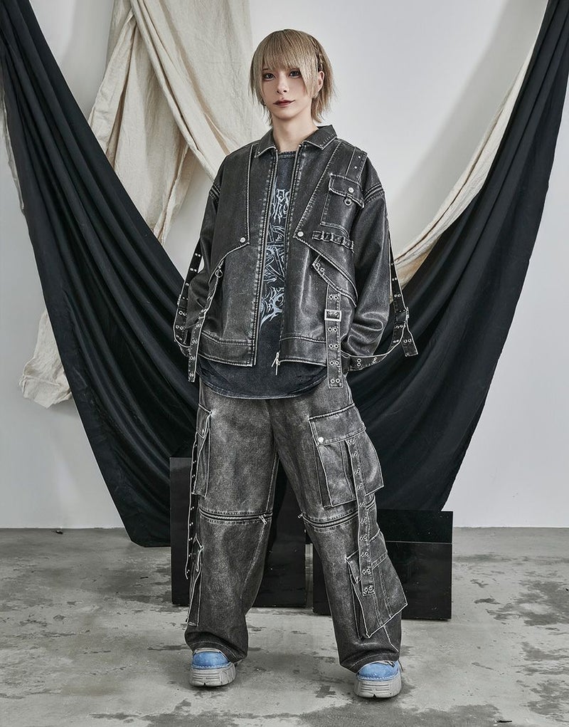 同時発売の【IL25-C03 2wayヴィンテージ加工合成皮革カーゴパンツ】のセットアップでの着用が可能です。