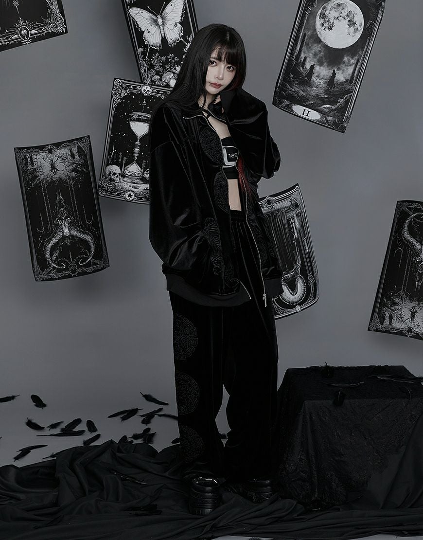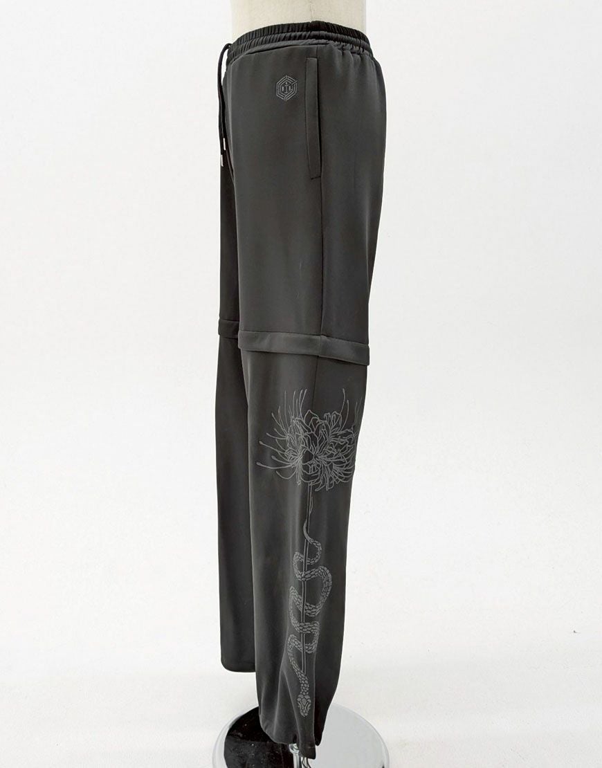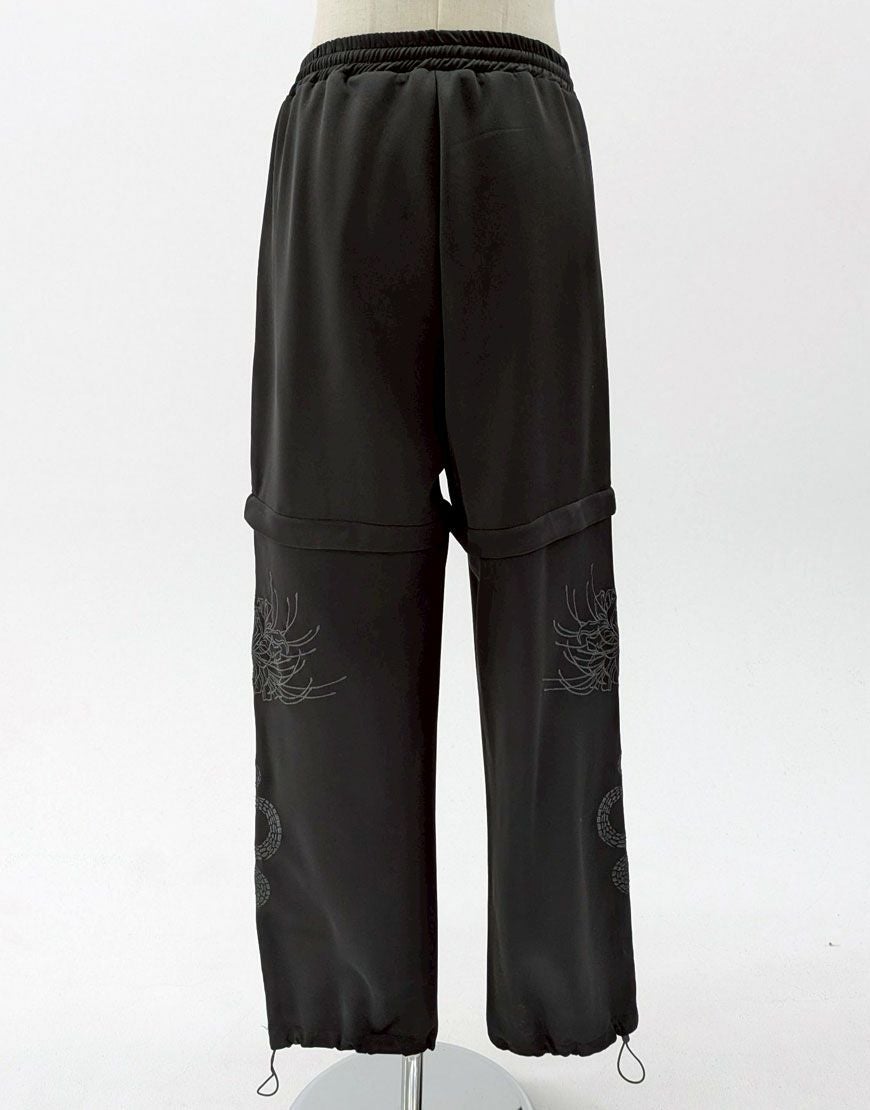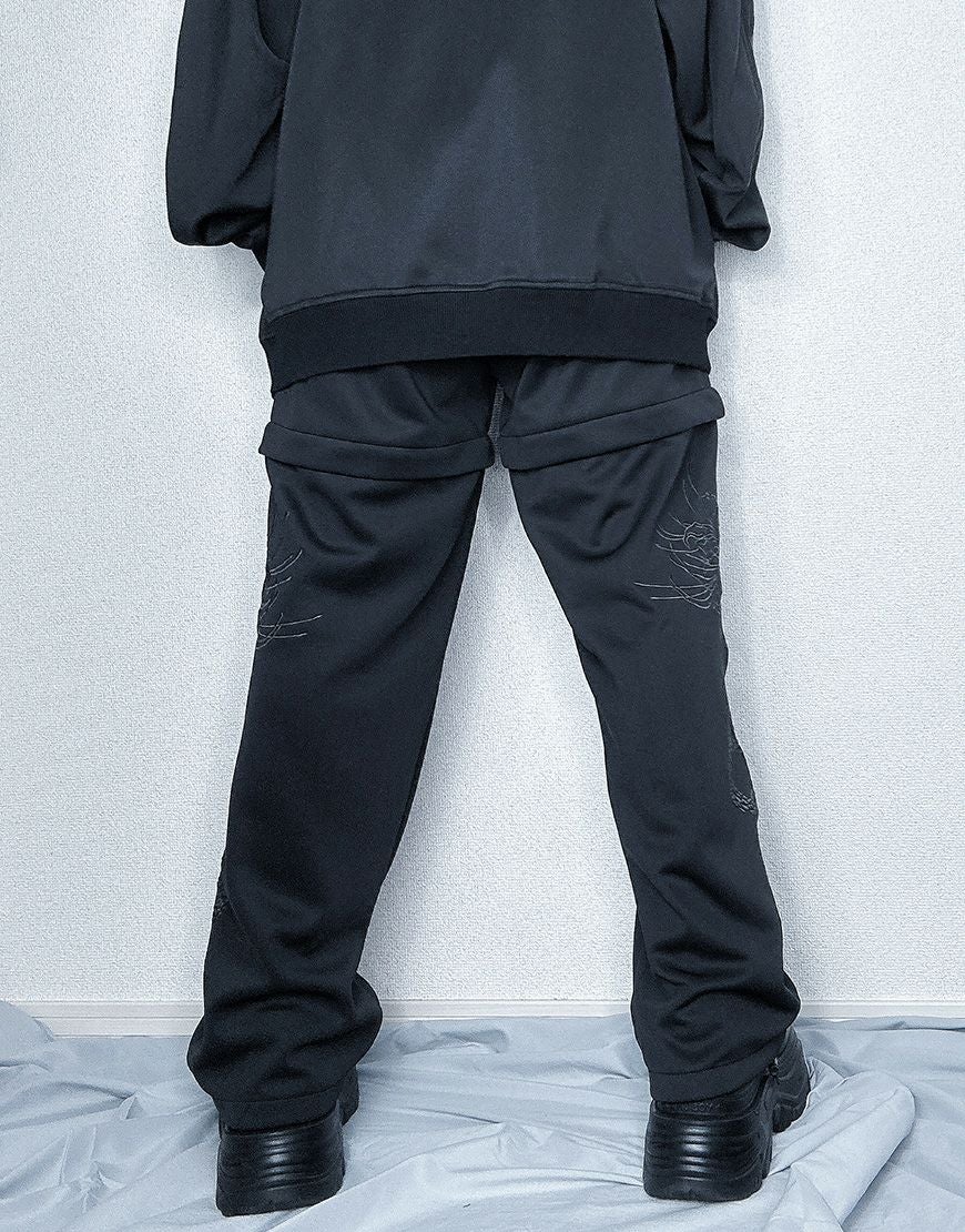 【アウトレット商品】ililil【イルイルイル】【天獄螺蛇】2way刺繍ジャージパンツ/Black