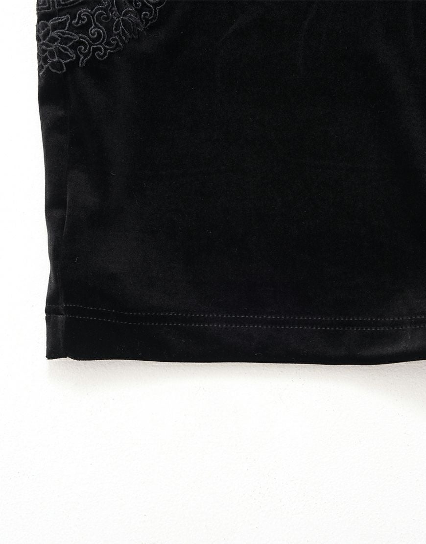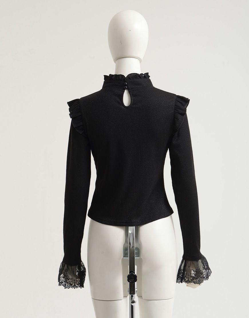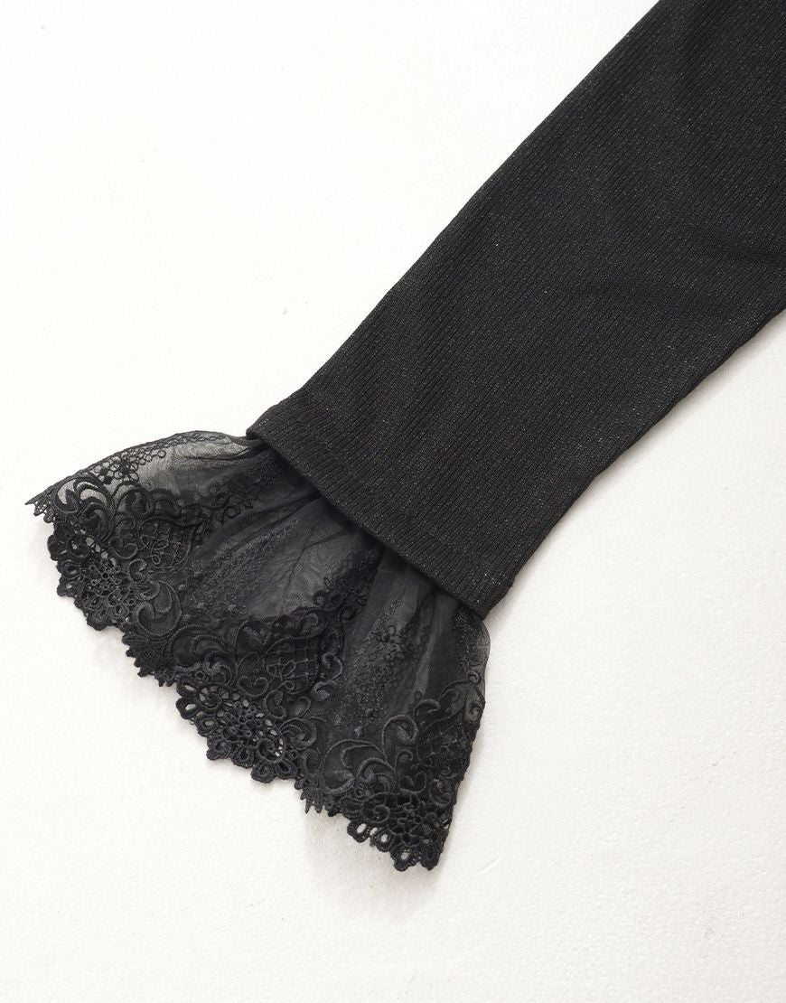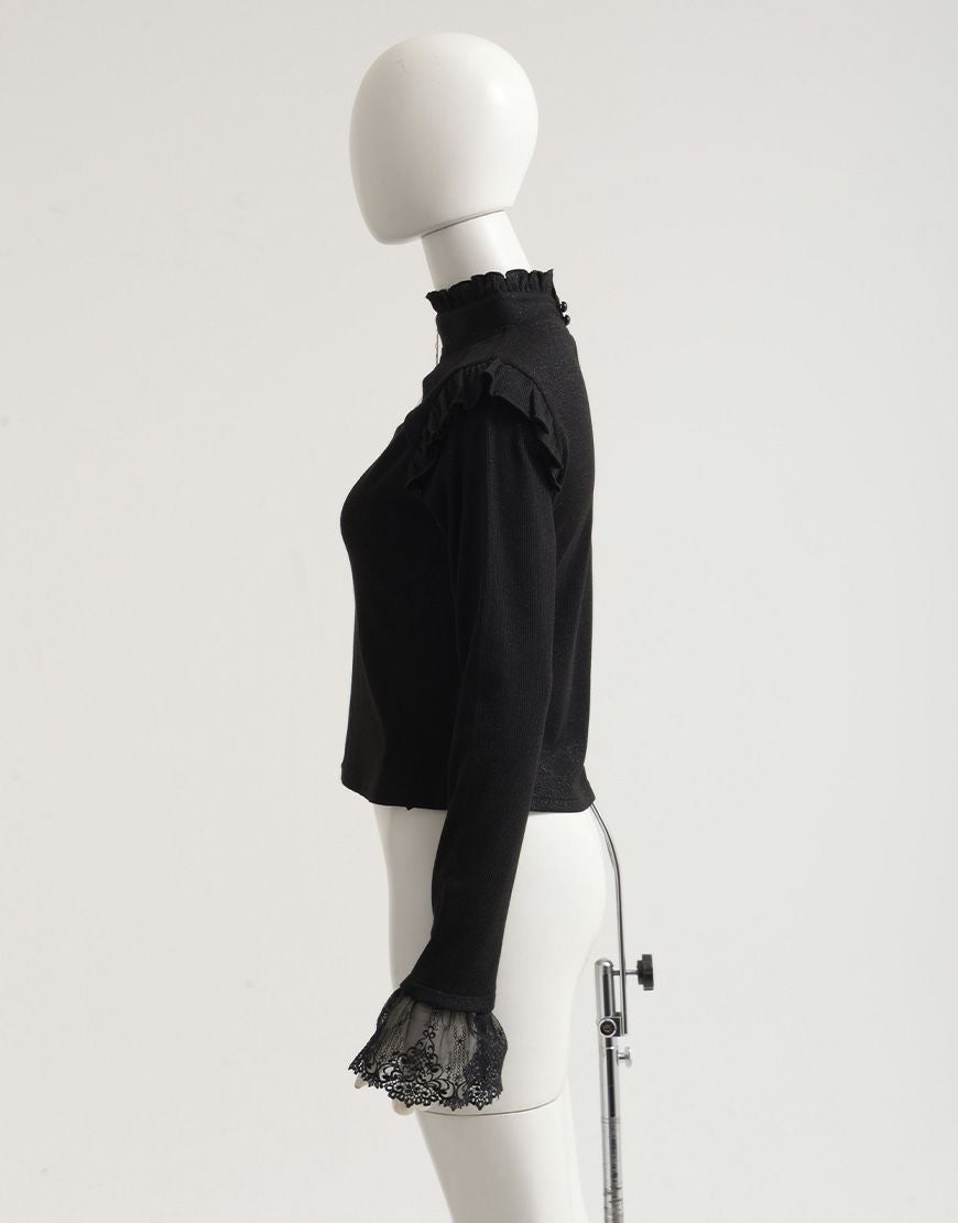 【アウトレット商品】ililil【イルイルイル】地雷刺繍襟付ラメリブカットソー/Black