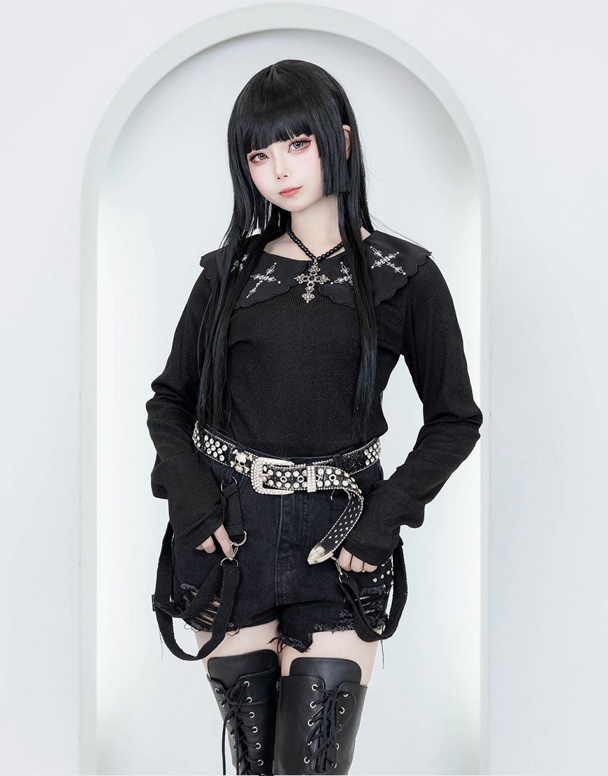 【アウトレット商品】ililil【イルイルイル】首輪と鎖のチェーン付きトップス/Black