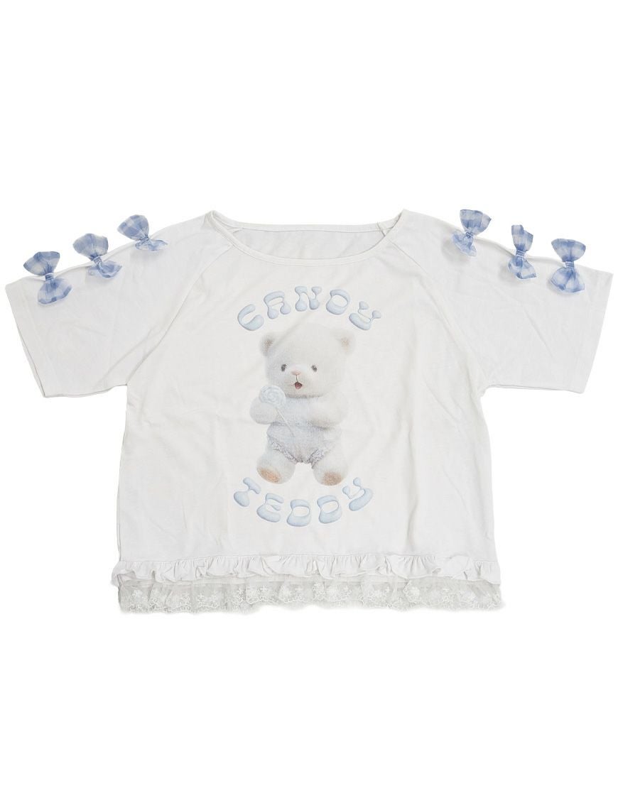 【アウトレット商品】ililil【イルイルイル】クマのエケチェンTシャツ/White