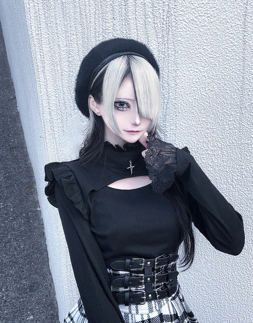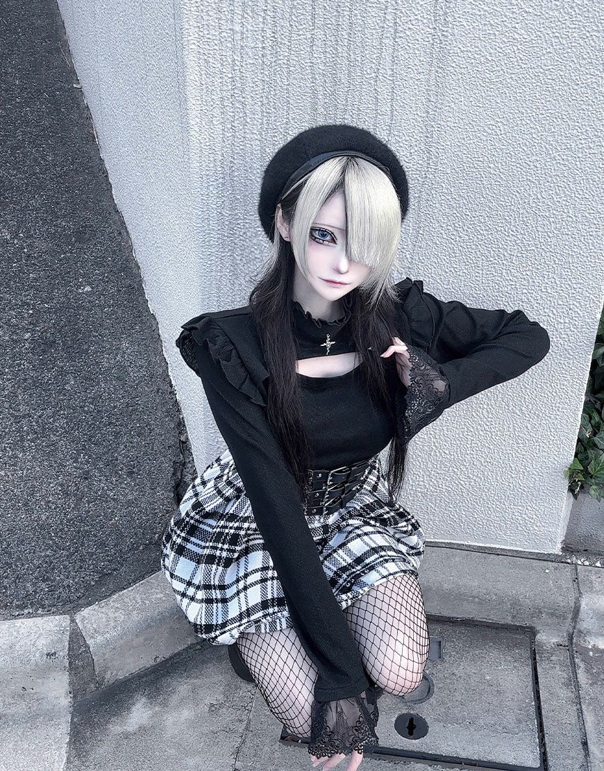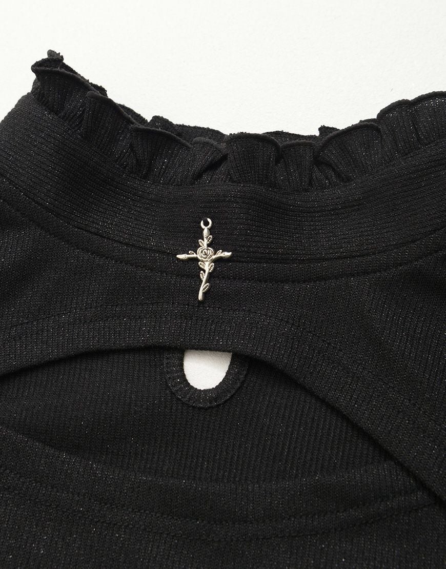 ililil 地雷ちゃんの覗かせクロスリブカットソー/全1色