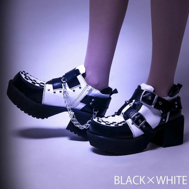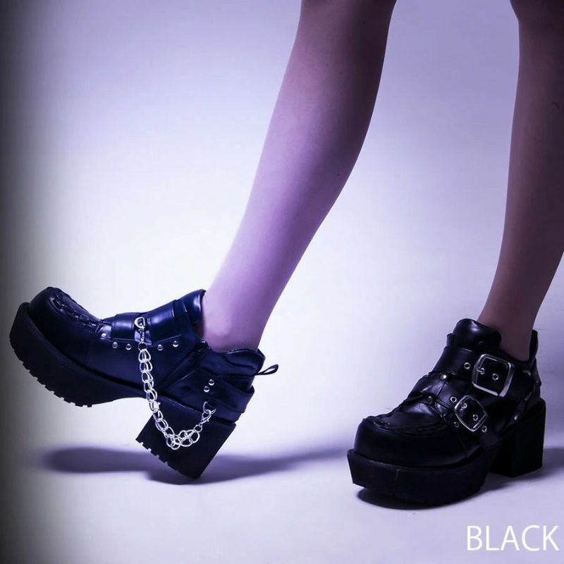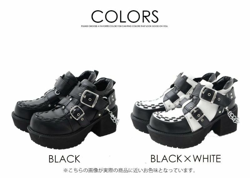 個性的なデザインで話題のYOSUKEから レディースの厚底ベルテッドシューズが入荷! ボリューム感のある底周りが目を引く、厚底ベルテッドシューズ。 かかとにはチェーンをあしらい、ダークな雰囲気に。 印象的な太めのダブルベルトもポイント。 パンクスタイルやV系スタイルにお勧めです。 同デザインのメンズモデルもあります♪ ゴス、パンク、ロック、ゴシックと相性抜群の ロックなヴィジュアルは抜群にかっこよくオススメです。