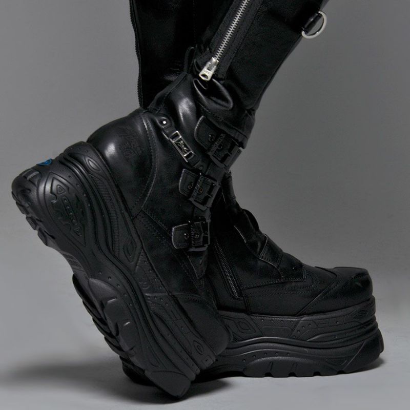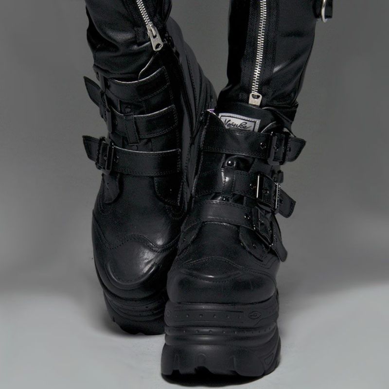 3連ベルト仕様の厚底スニーカーとなり内側ジッパーで脱ぎ履きも簡単です。