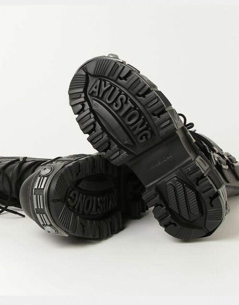 NOVESSEL【ノベセル】ベルト付き厚底ブーツが登場しました。 マットなフェイクレザー素材と金具パーツが特徴的な厚底ブーツ。 絶妙なボリューム感が幅広いスタイルに相性抜群です。 ユニセックスとしても着用可能。